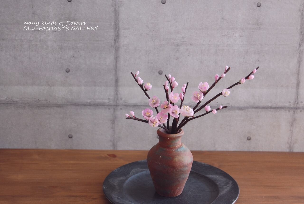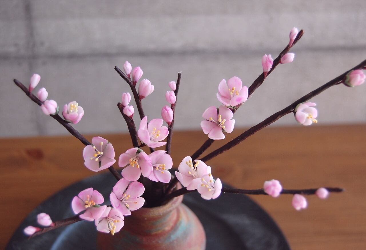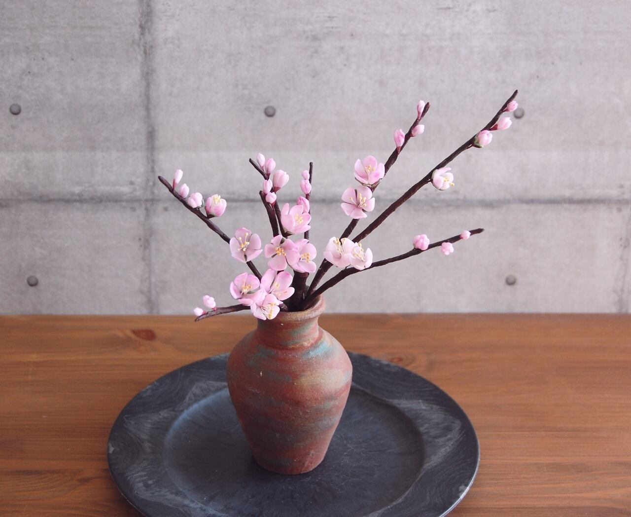 そんな梅を粘土で制作し、手のひらサイズの壺に生けました。
