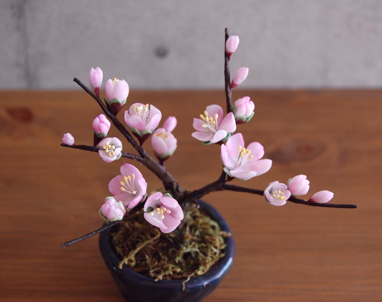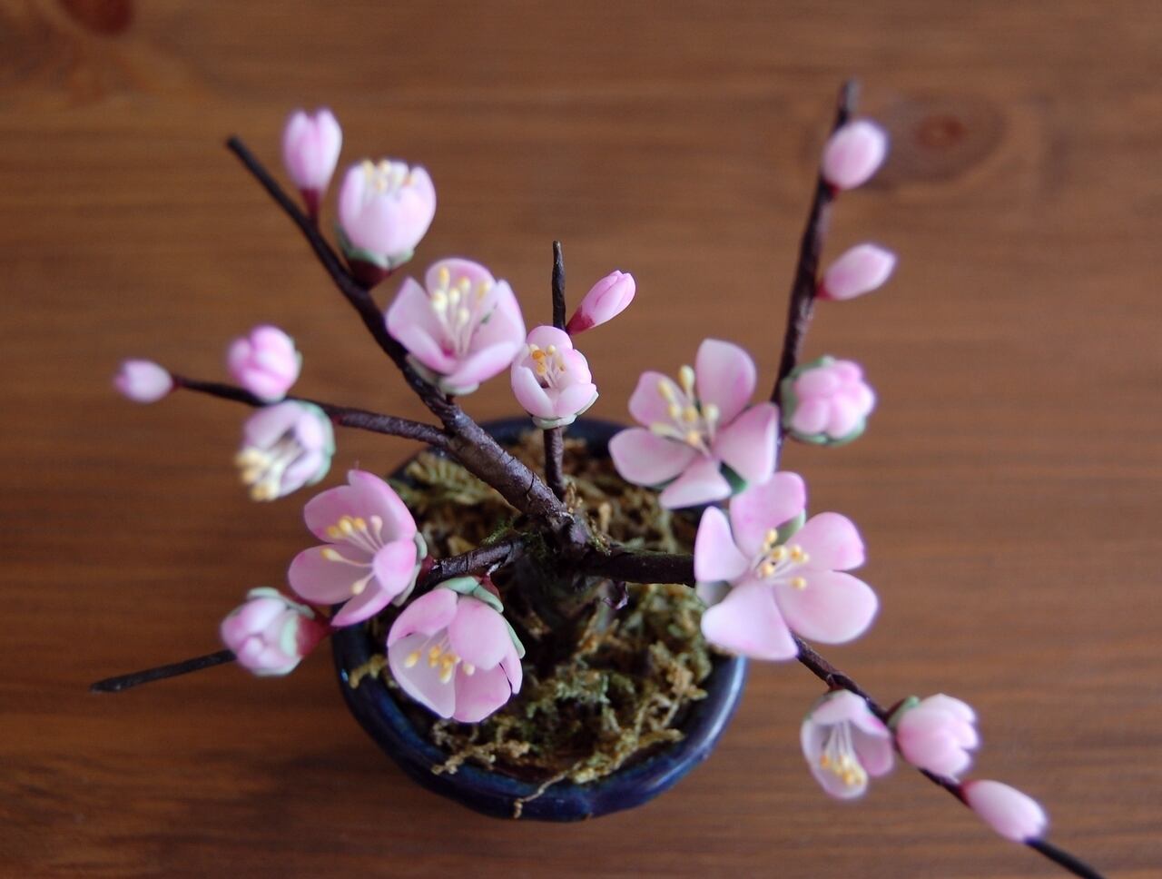 ◆粘土のお花◆ 枯れない梅の木♪ 梅盆栽 U629