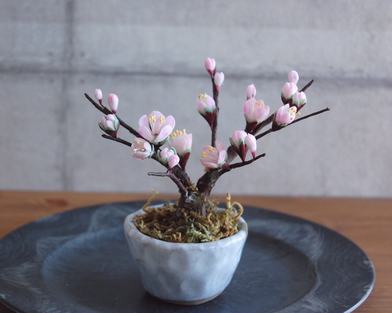 ◆粘土のお花◆ 枯れない梅の木♪ 梅盆栽 U635