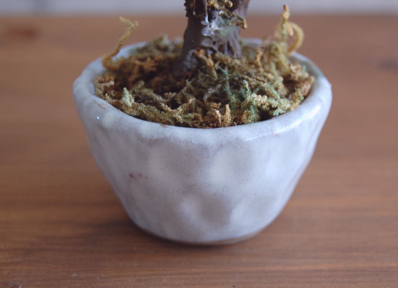 そんな梅を粘土で制作し、梅盆栽に仕上げました。