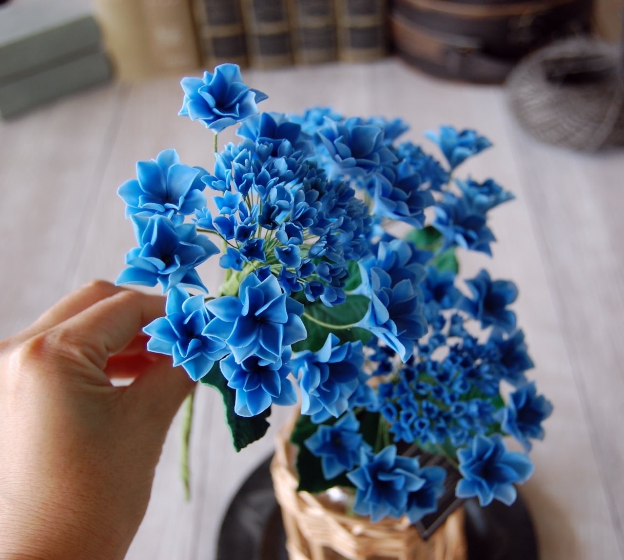 ◆粘土のお花◆ ガクアジサイ ダンスパーティー・・・ブルー 高さ約29センチ A657