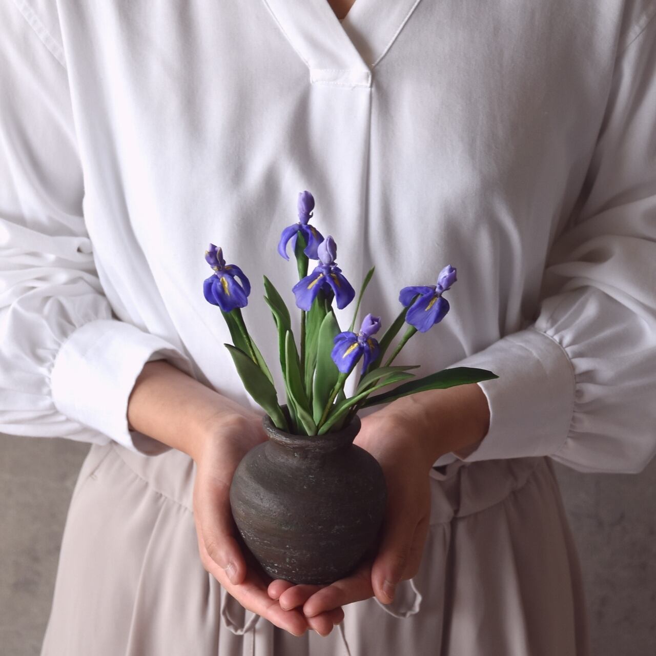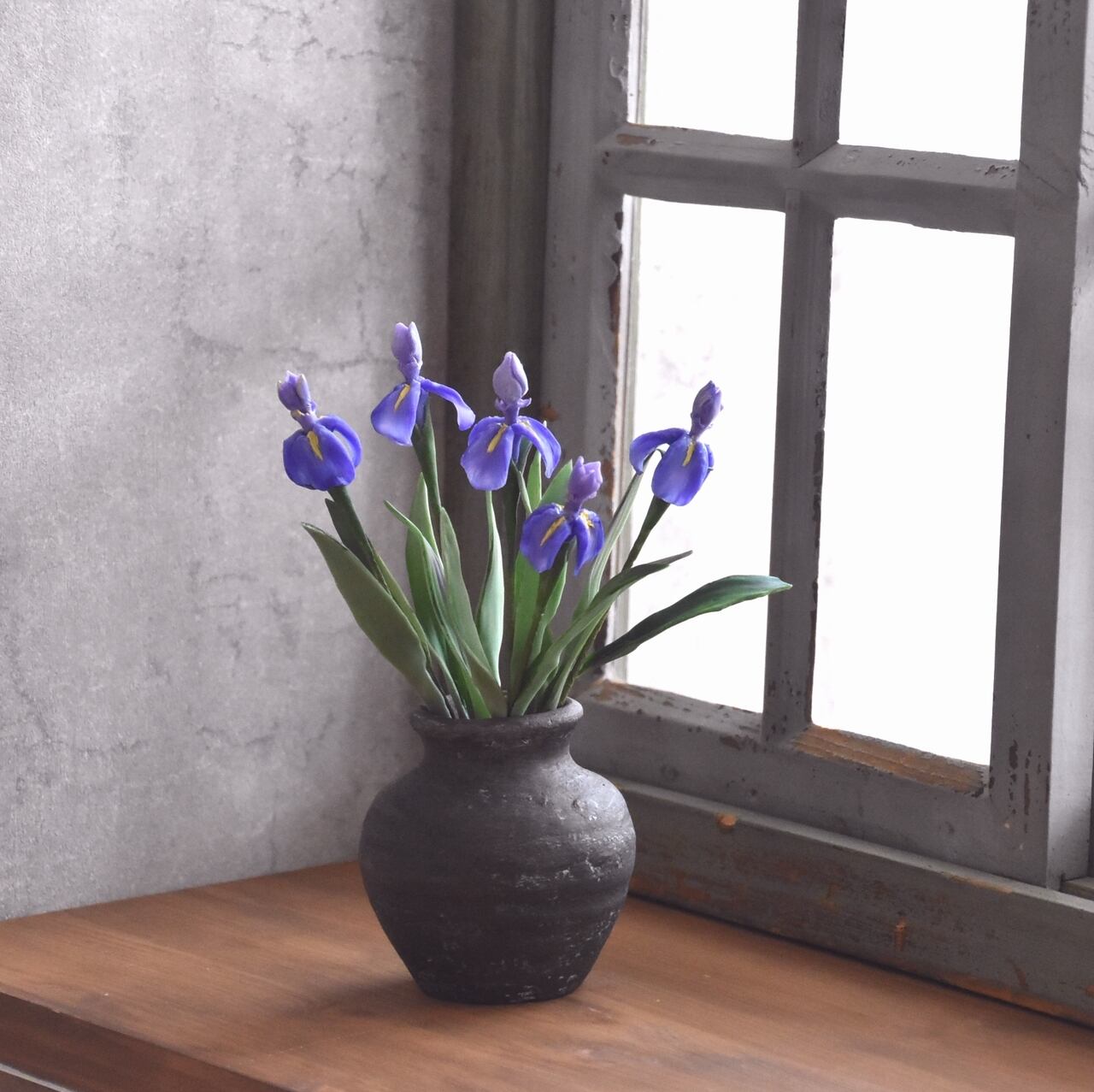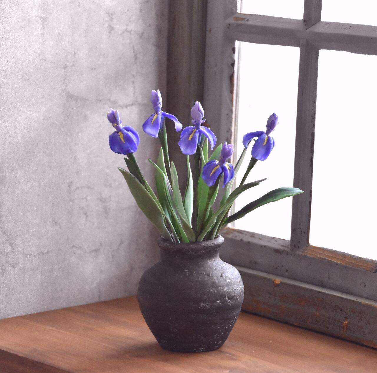 ◆粘土のお花◆ 菖蒲(あやめ) ミニサイズ 壺 A789