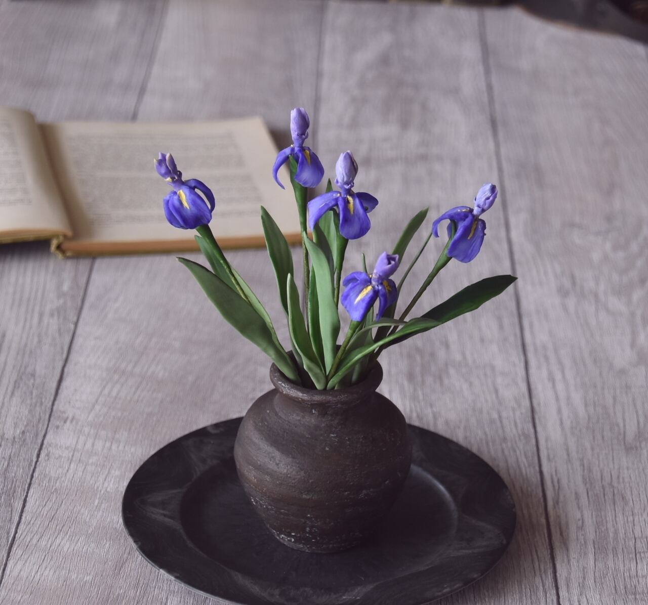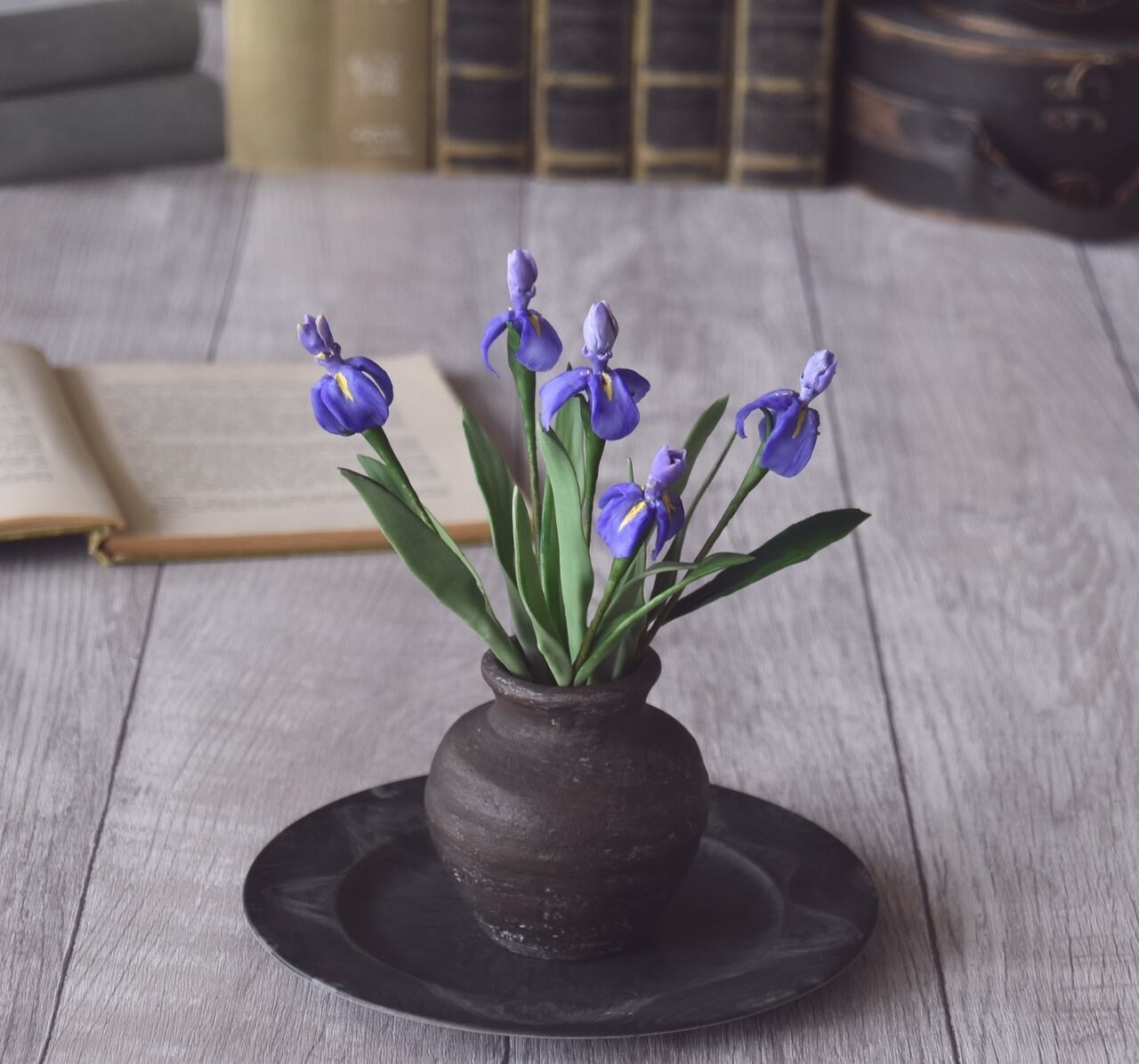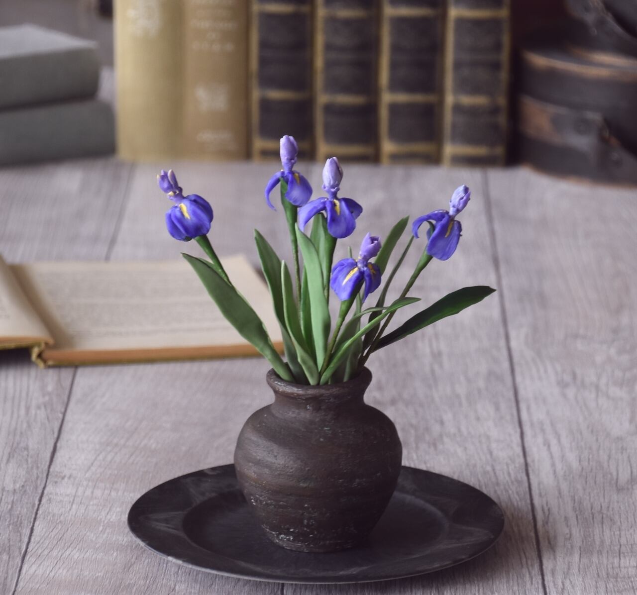 ◆粘土のお花◆ 菖蒲(あやめ) ミニサイズ 壺 A789