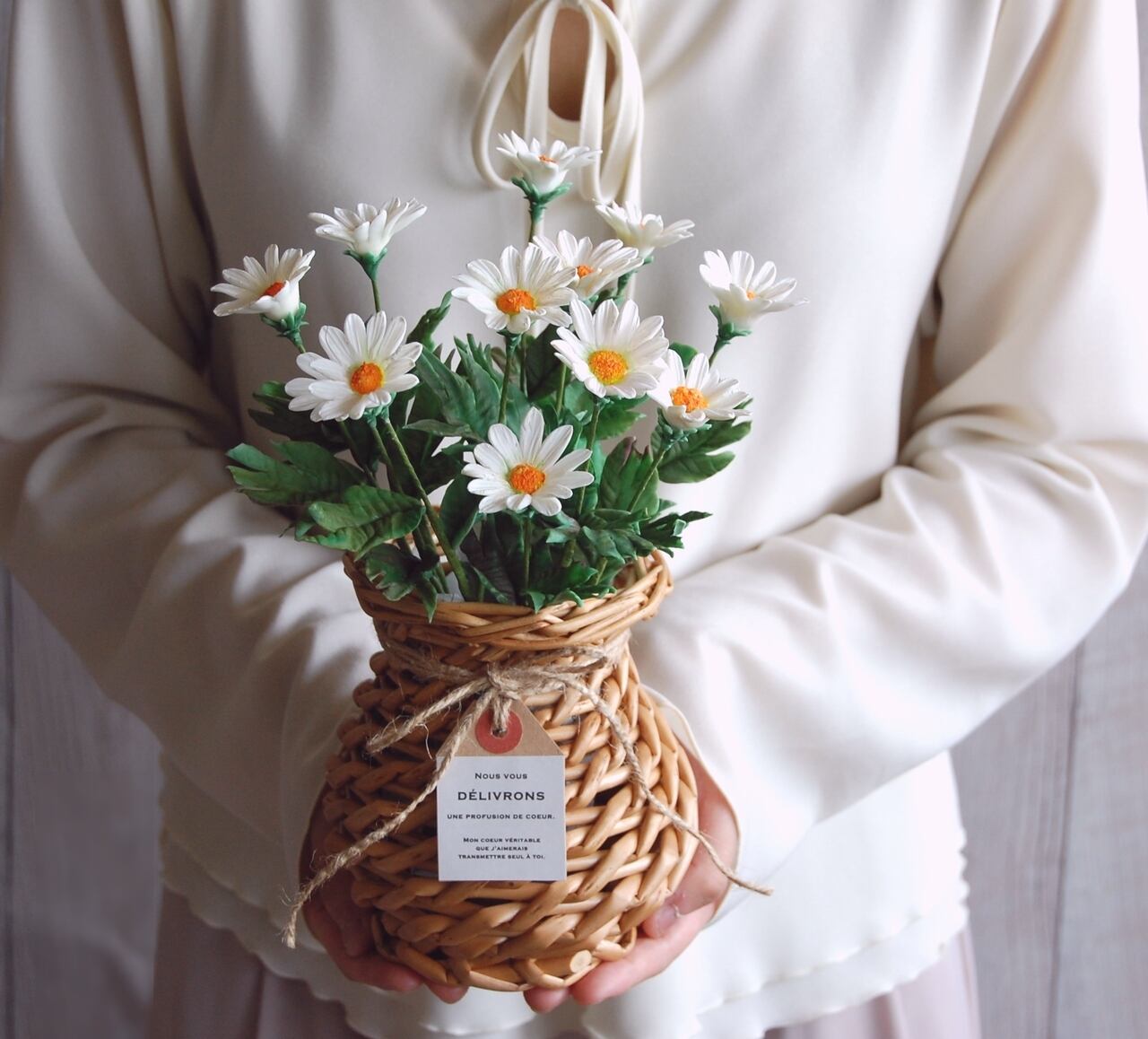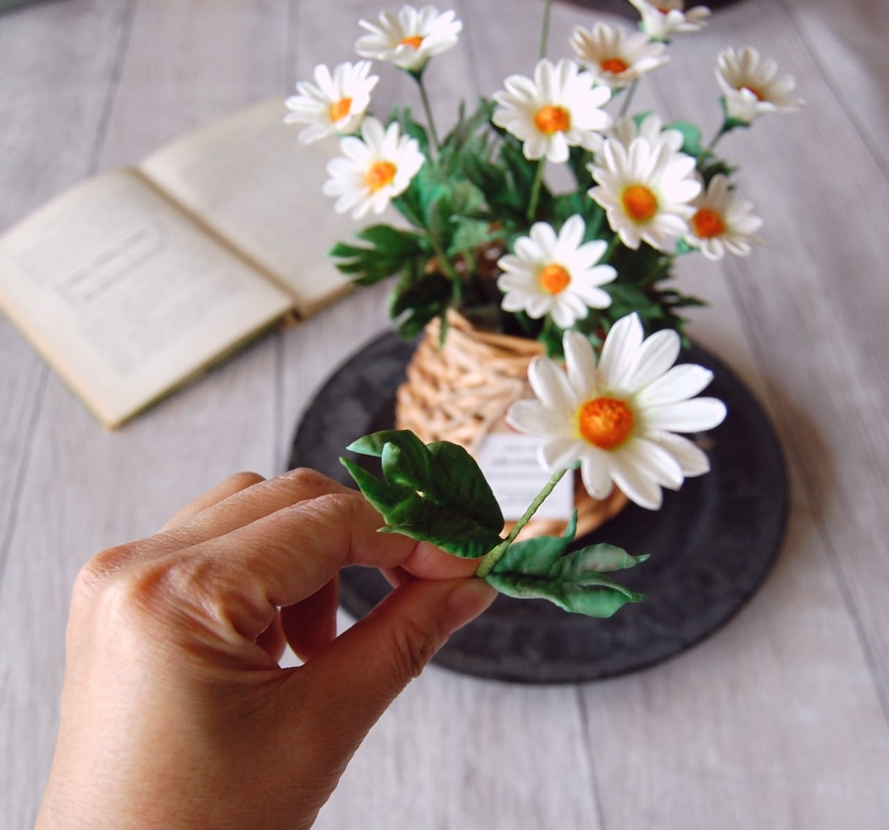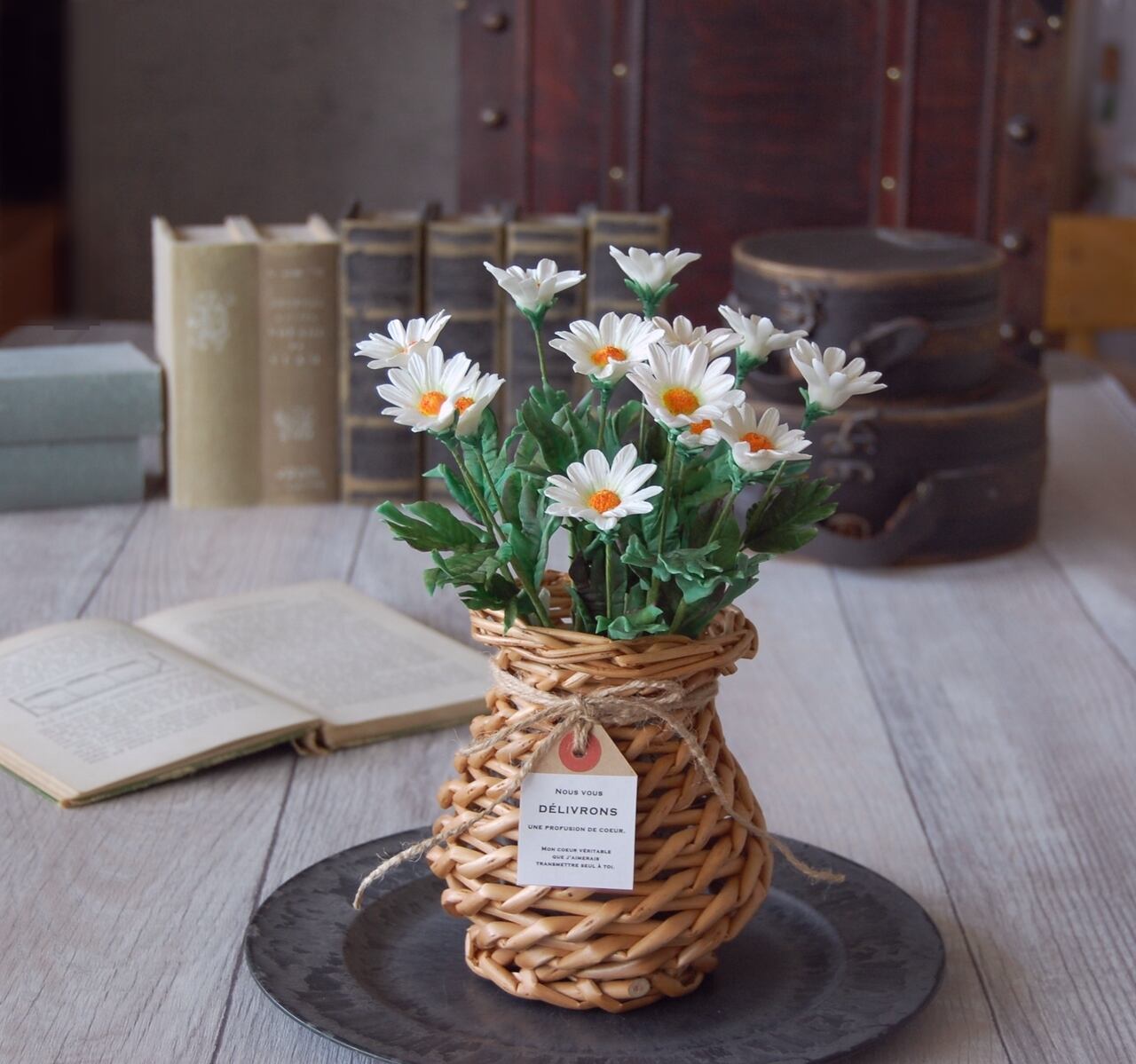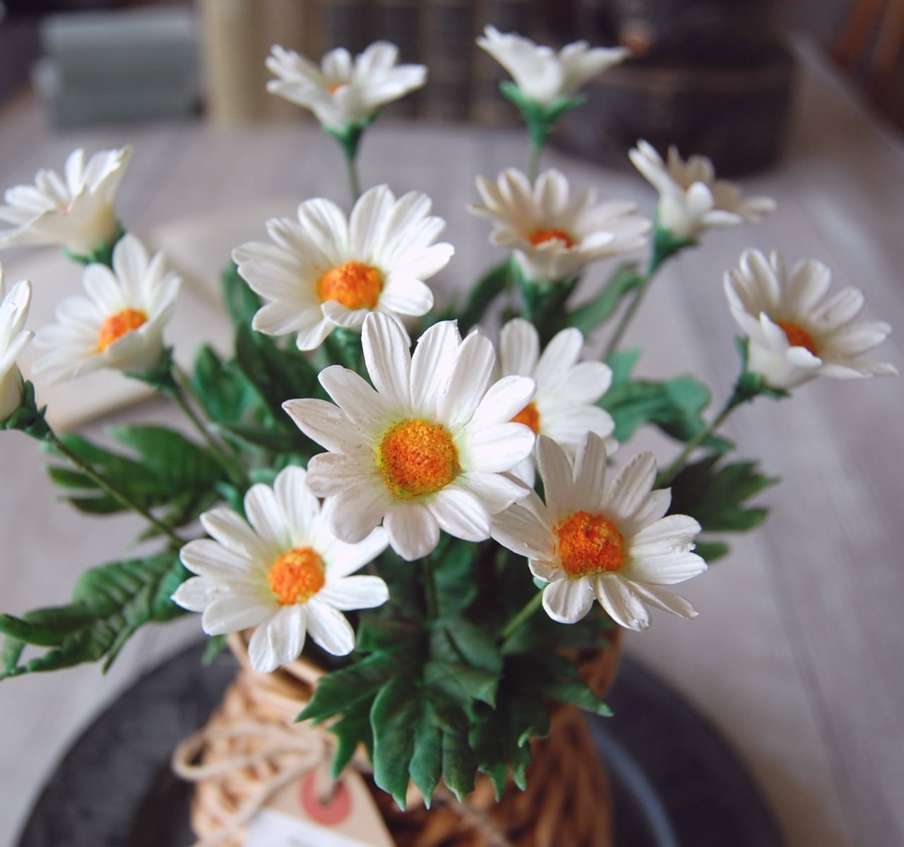 ◆粘土のお花◆ マーガレット(ホワイト) バスケットに飾って・・・ M671