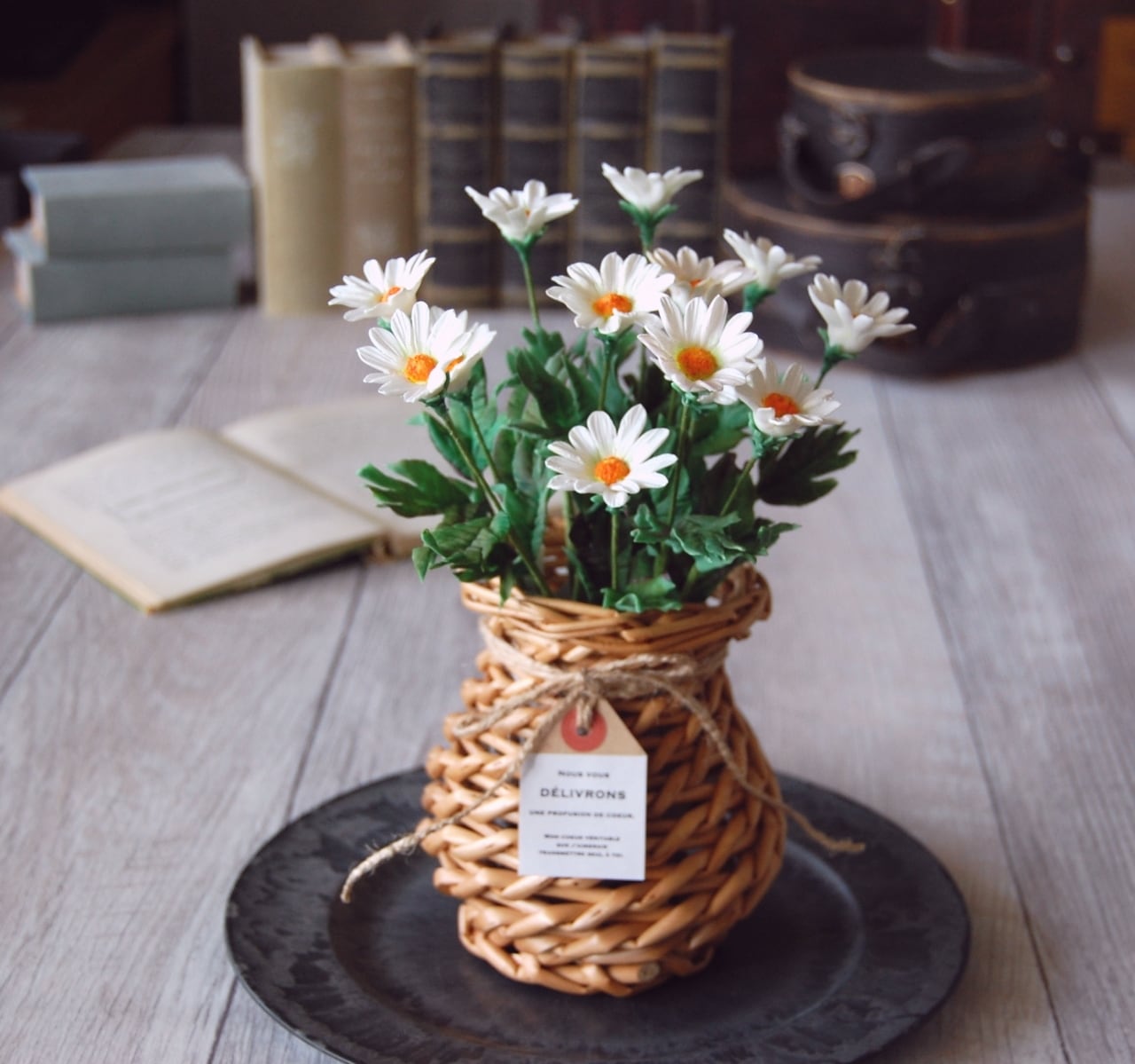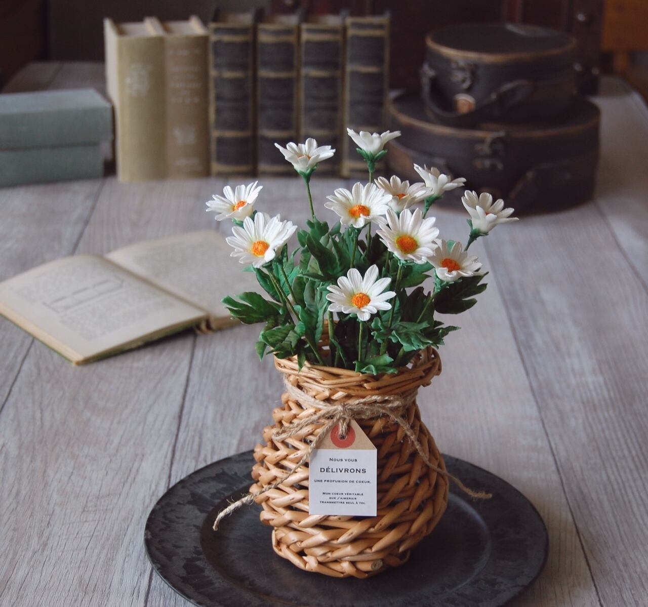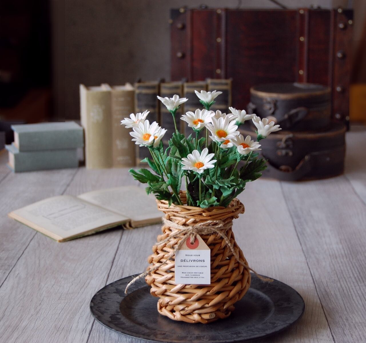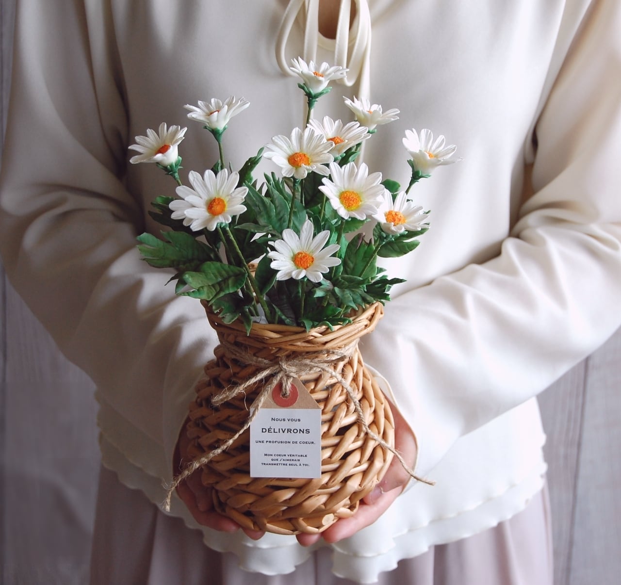 ◆粘土のお花◆ マーガレット(ホワイト) バスケットに飾って・・・ M671