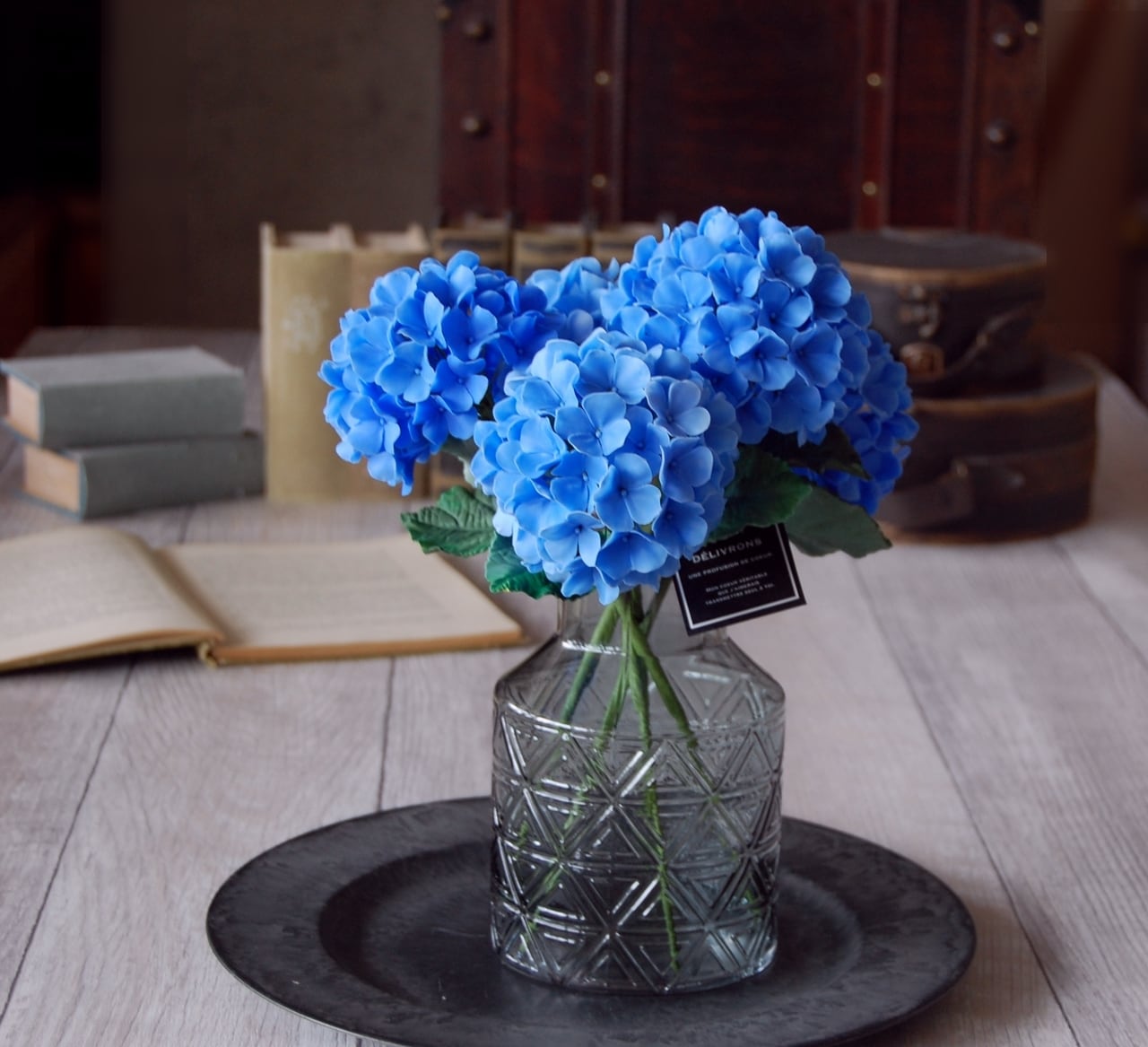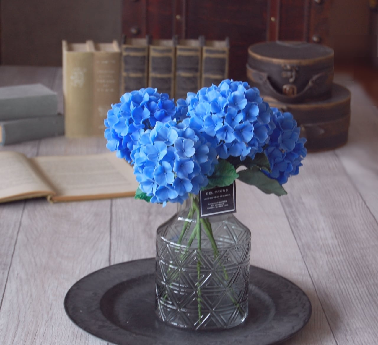 ◆粘土のお花◆ 紫陽花 ブルー ガラスボトルに飾って…A677