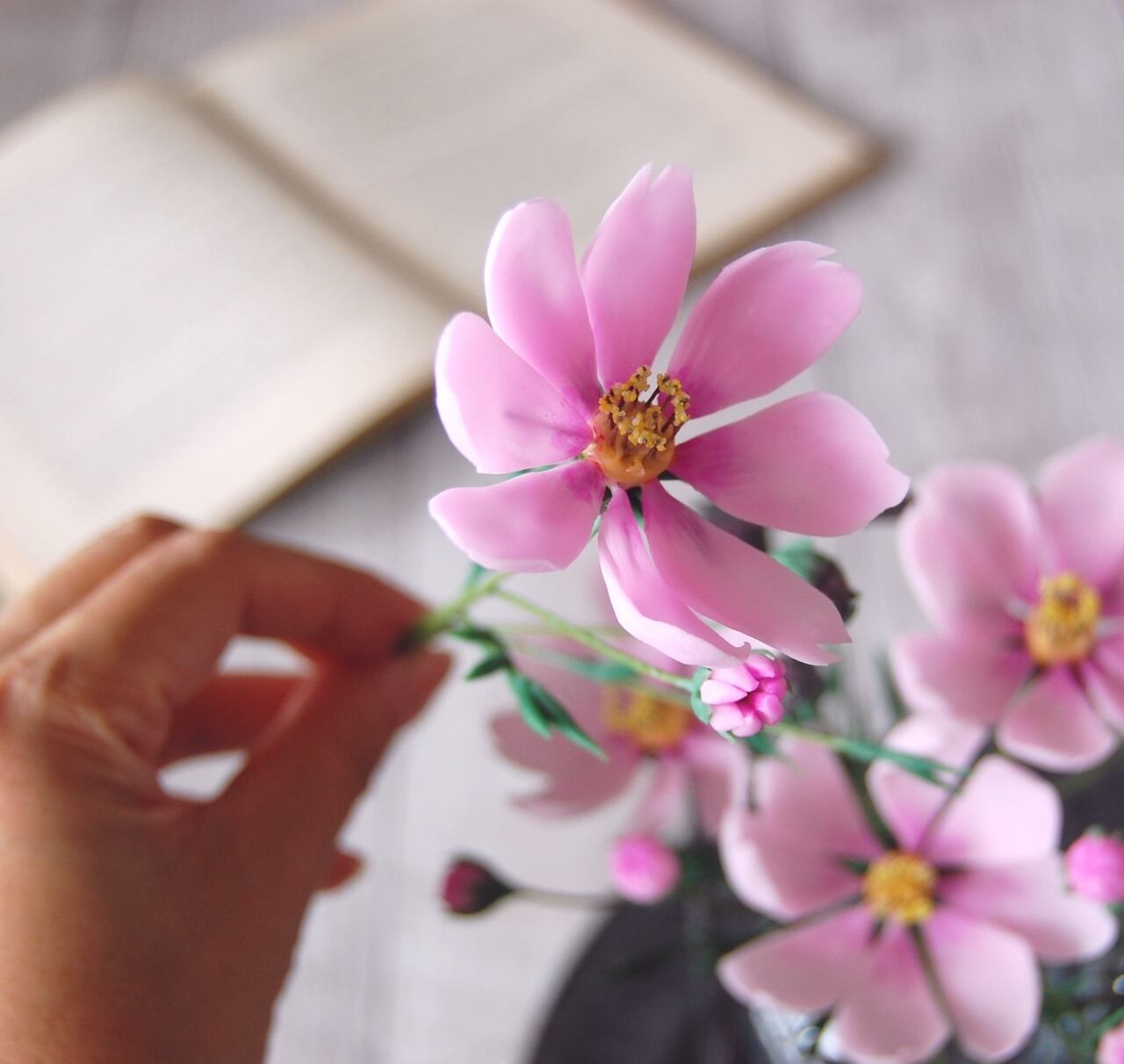 ◆粘土のお花◆ コスモス・・・ライトピンク 高さ約24センチ K695