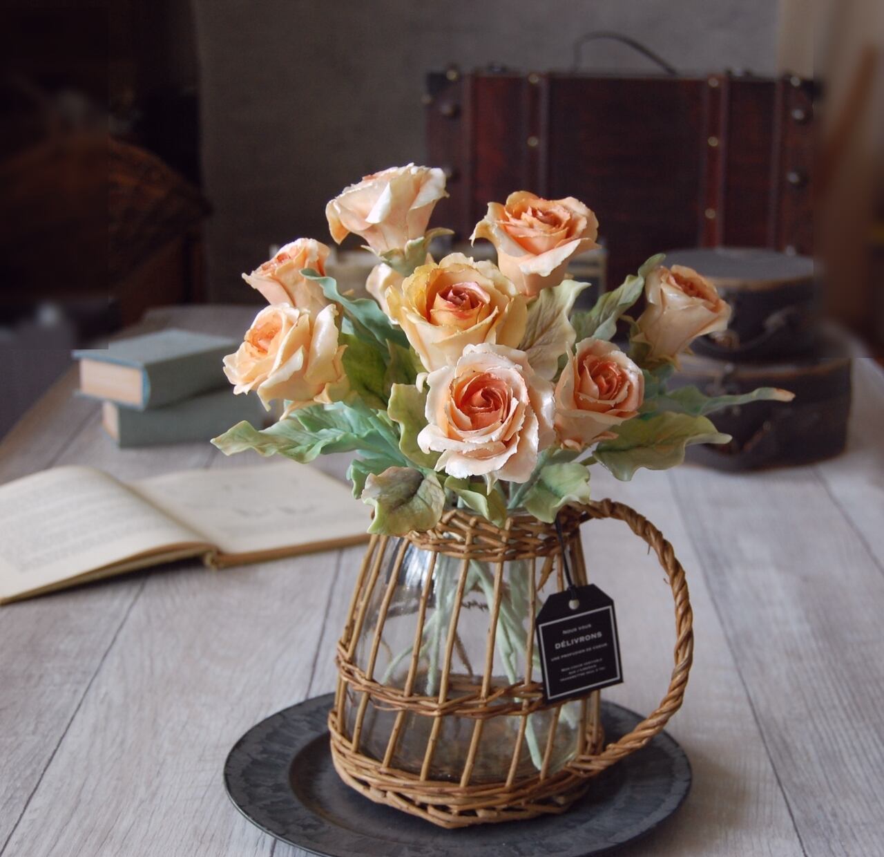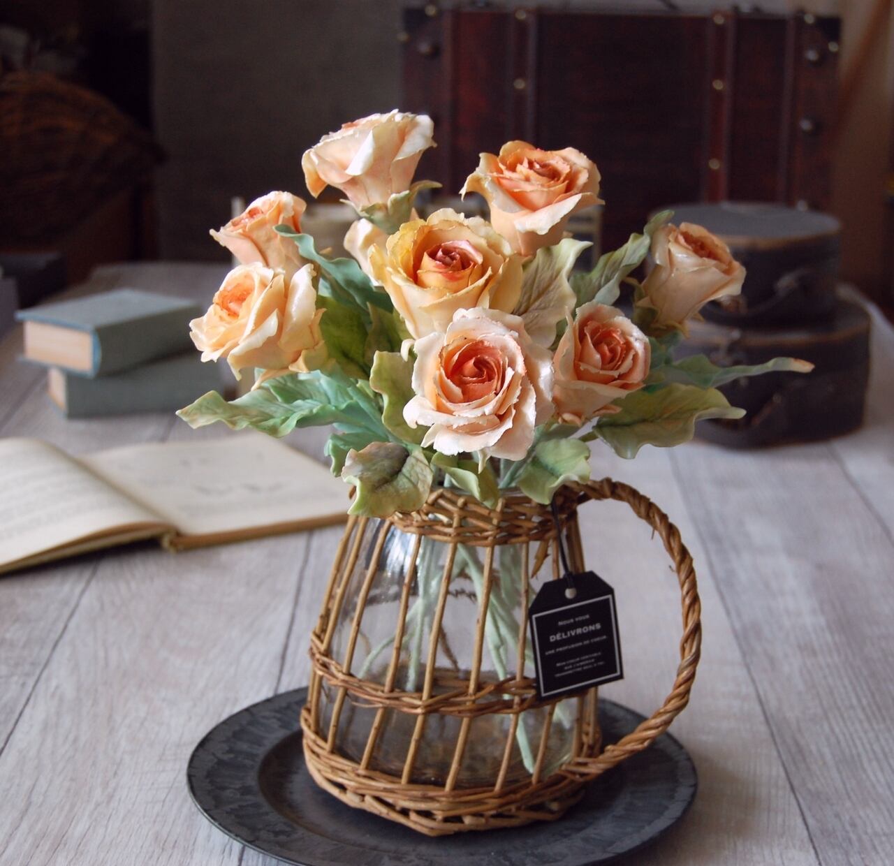 ◆粘土のお花◆ 薔薇・・・アプリコット(ライトオレンジ) フラワーピッチャー B701