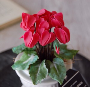 粘土でシクラメンを作り、エレガントなフラワーポットに植え込みました。