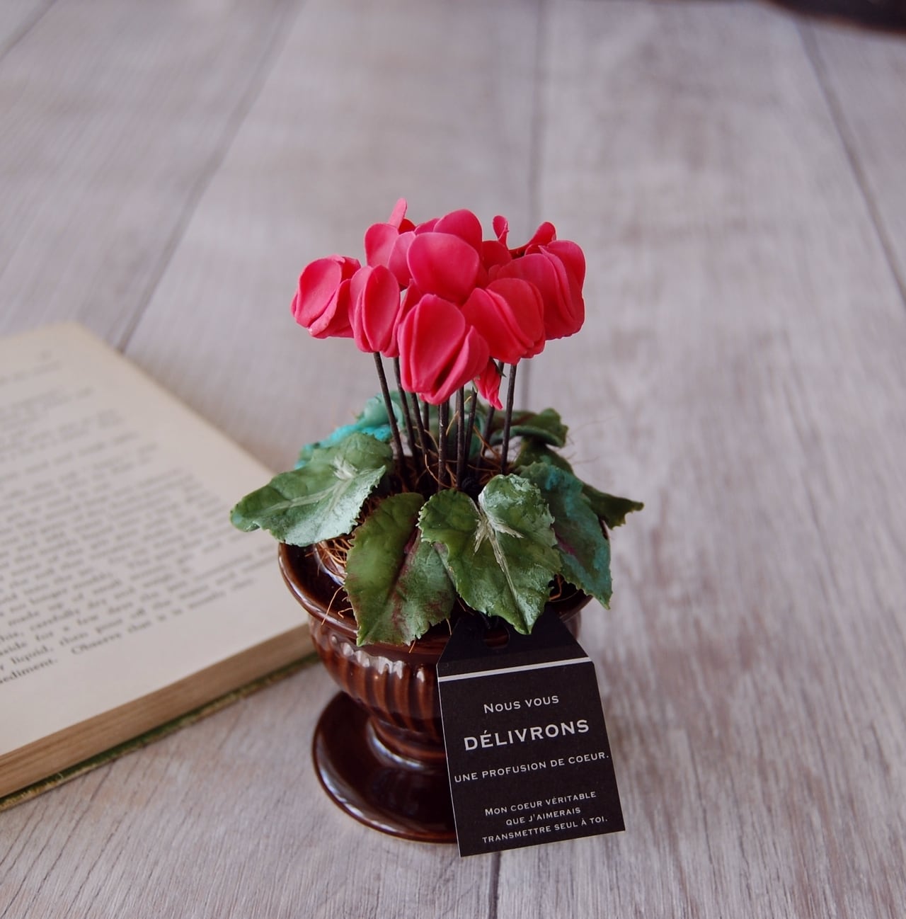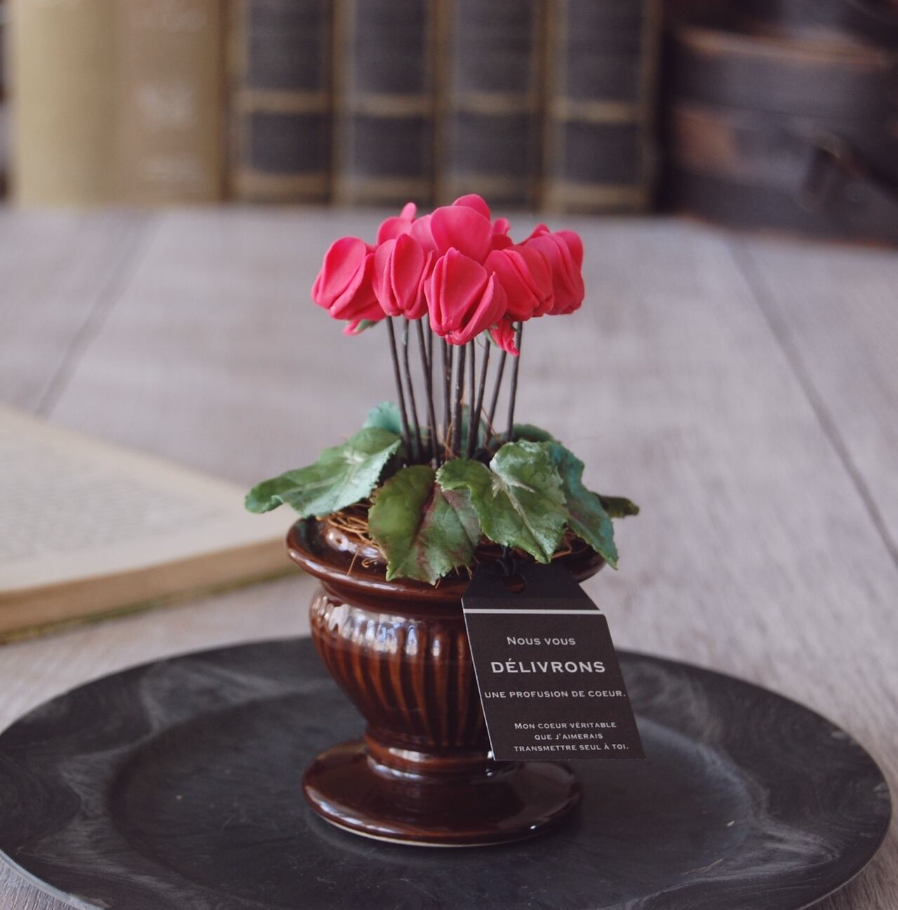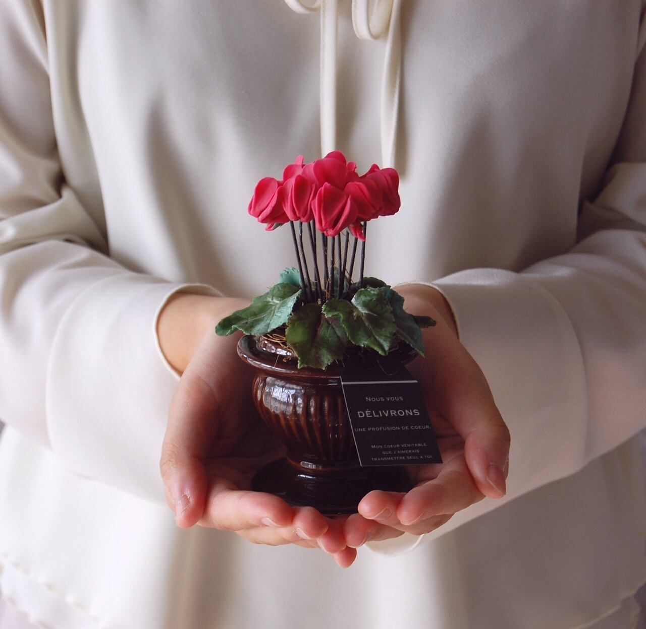 花びらは一枚一枚丁寧に薄く伸ばし、エレガントなフラワーポットにたっぷりと植え込んでいます。