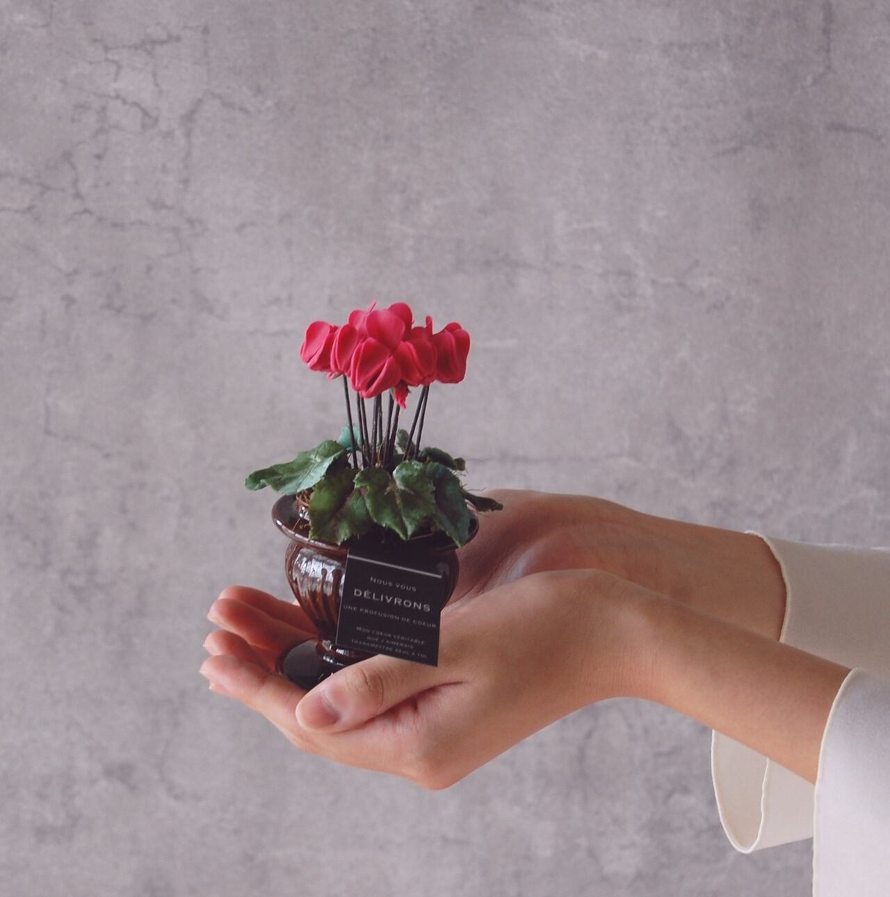 冬になると、たくさんのシクラメンが店頭に並びます。