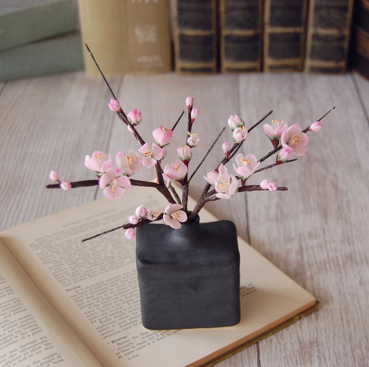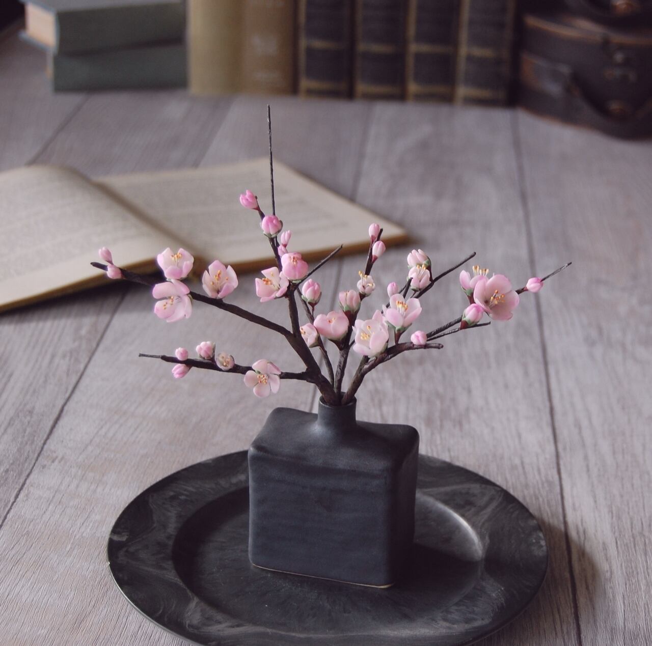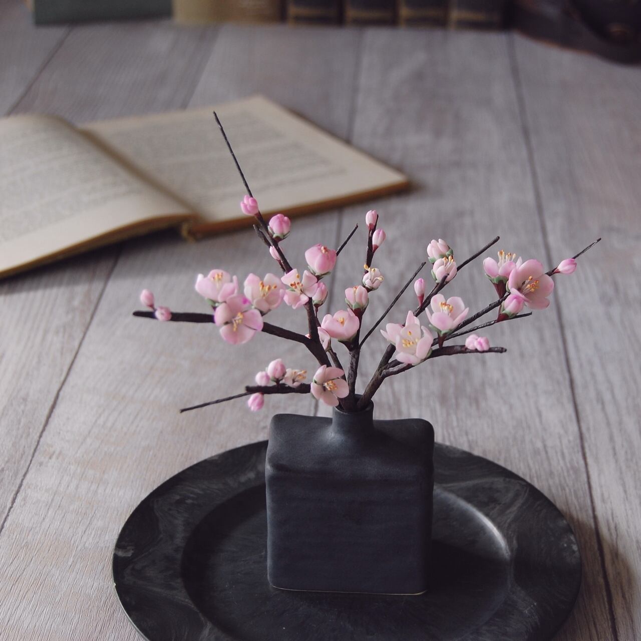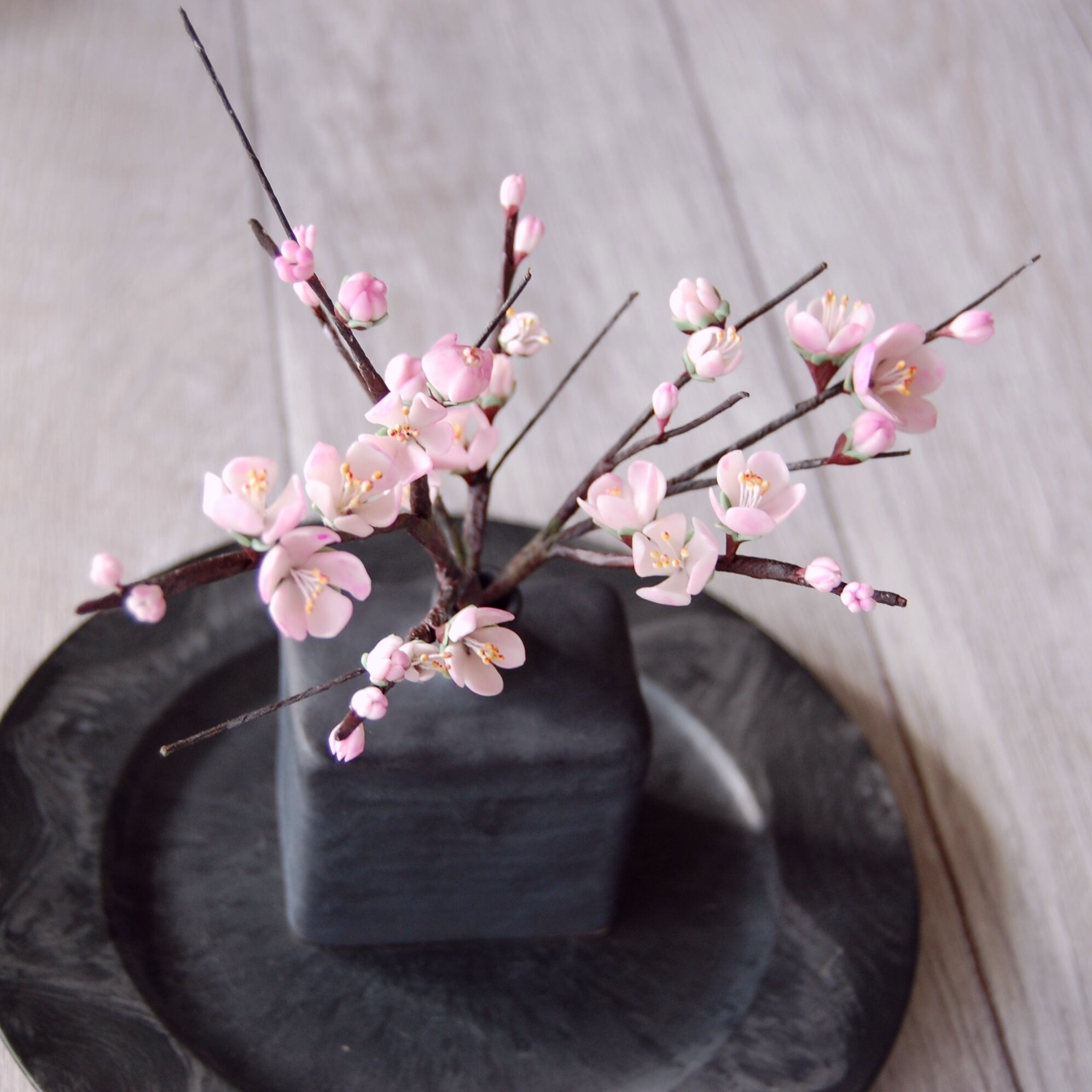 ◆粘土のお花◆ 梅 【波佐見焼】 凛・レクトベース ・ブラック U753