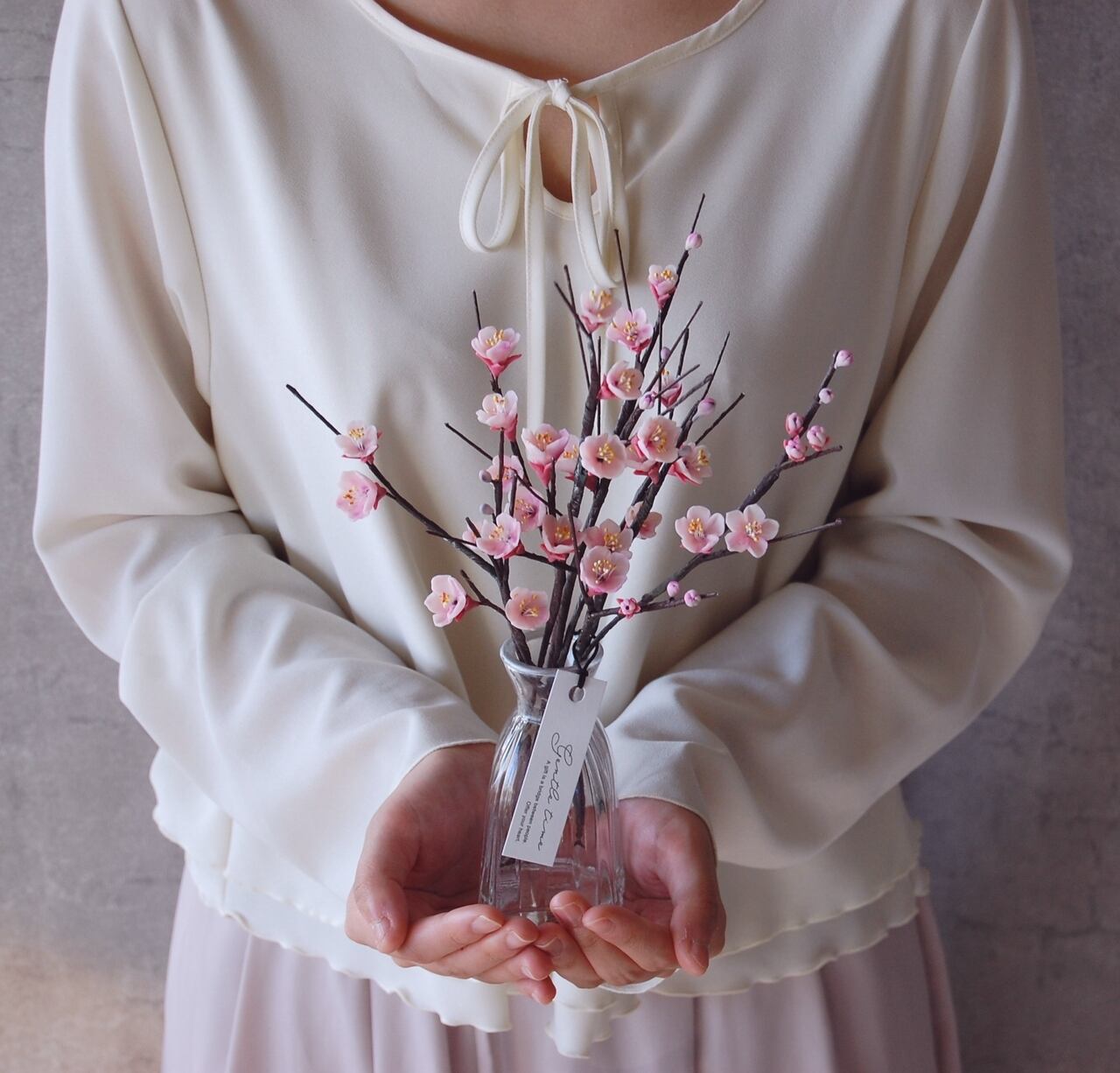 ◆粘土のお花◆ 梅 ガラスボトル U755