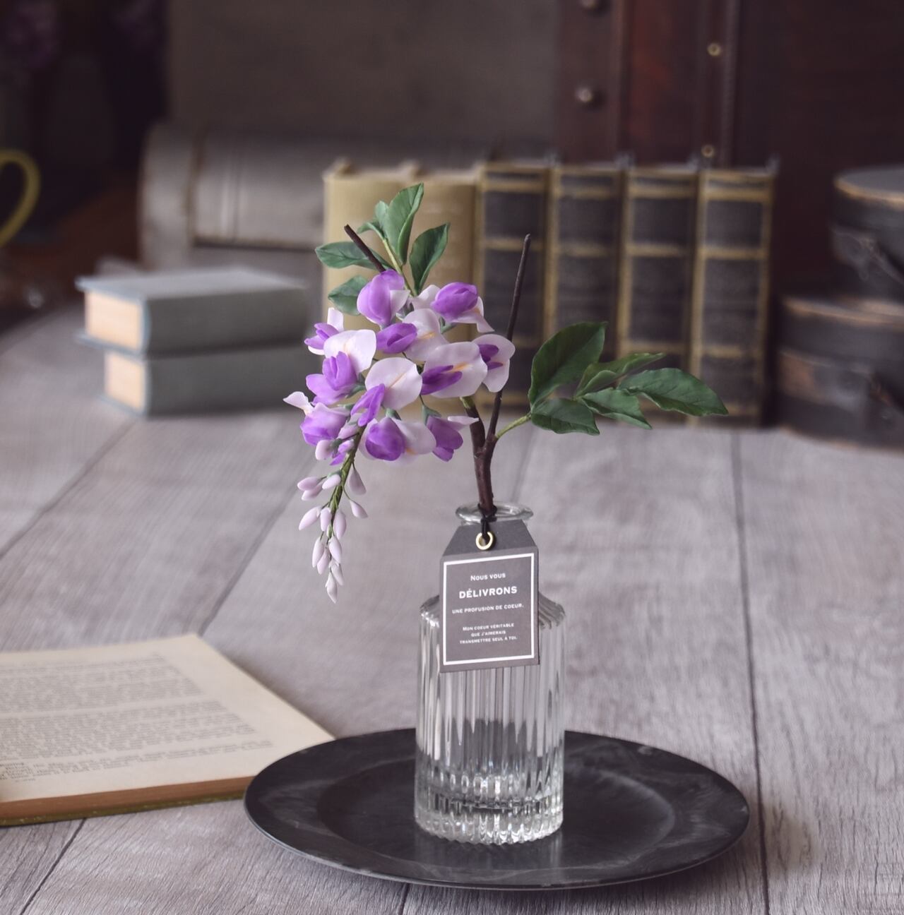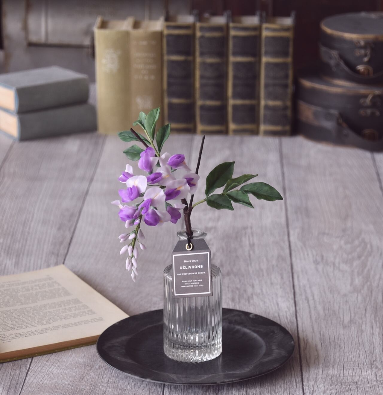 藤のたおやかな花房ととてもマッチしていますので、お気に入りのコーナーやキャビネットに置いてしっとりとした雰囲気をお楽しみください。