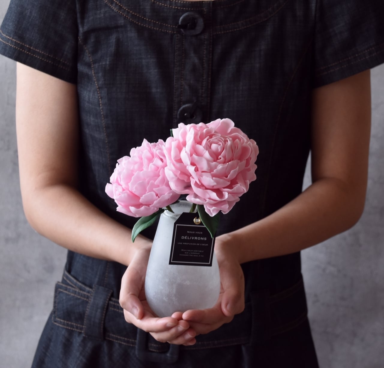 芍薬は花びらを一つ一つ最高級彫塑用ネンドで手作りしています。