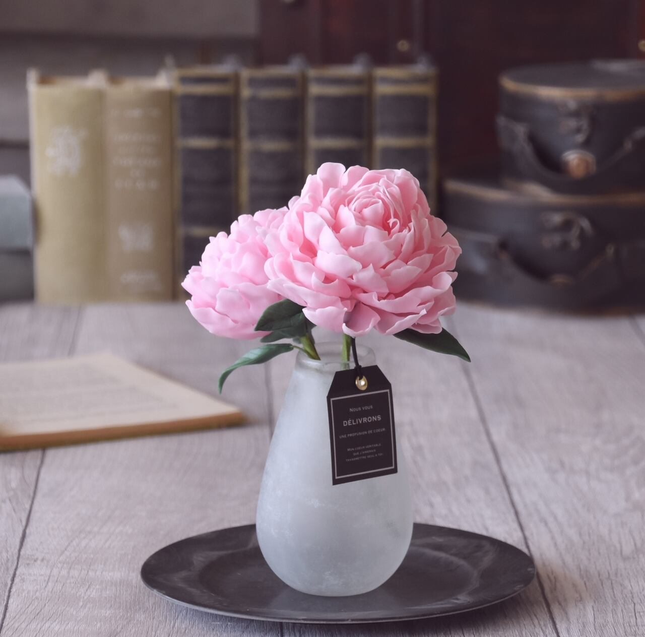 芍薬の艶やかさととてもマッチしていますので、お気に入りのコーナーやキャビネットに置いてしっとりとした雰囲気をお楽しみください。