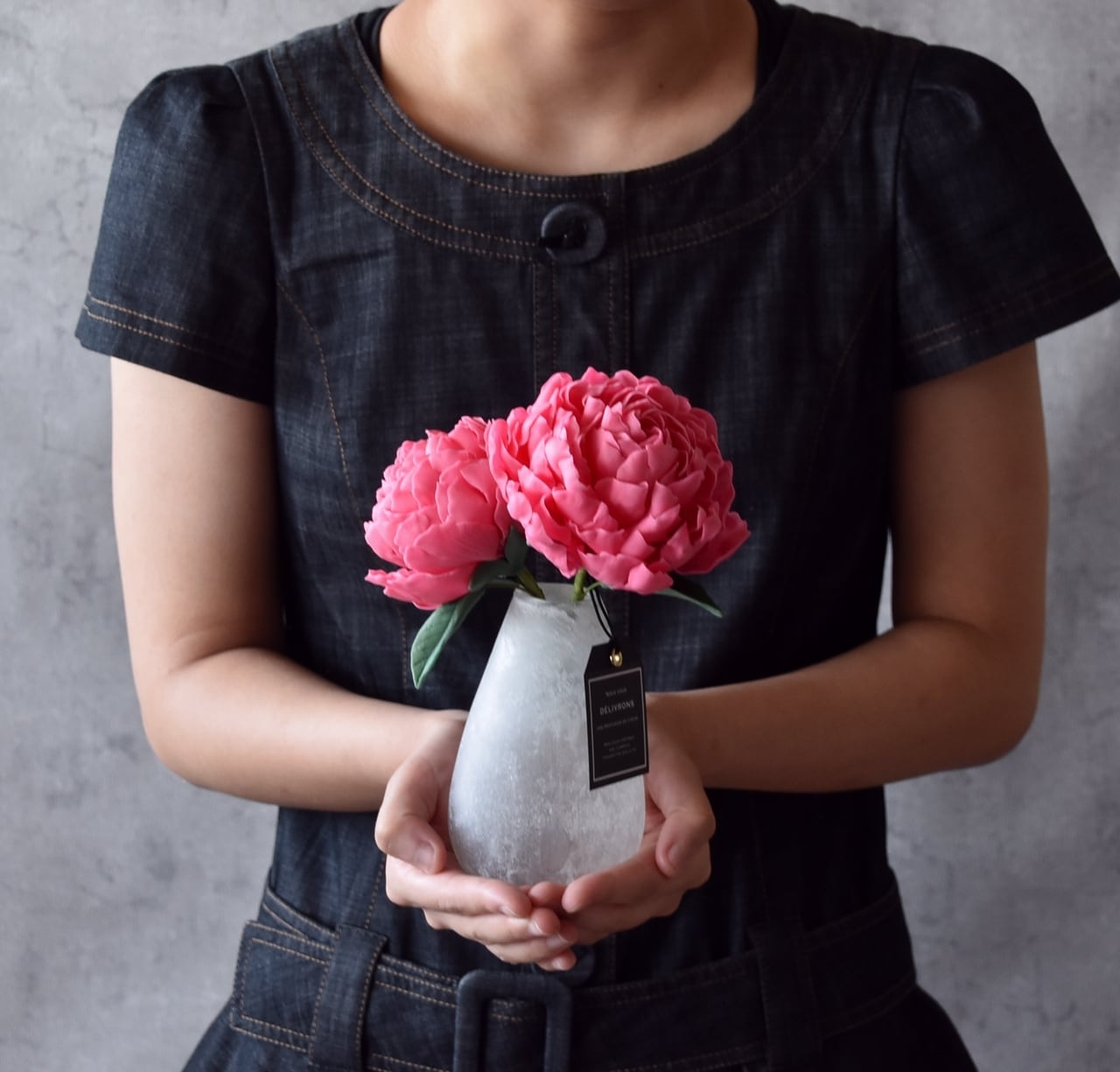 芍薬の艶やかさととてもマッチしていますので、お気に入りのコーナーやキャビネットに置いてしっとりとした雰囲気をお楽しみください。