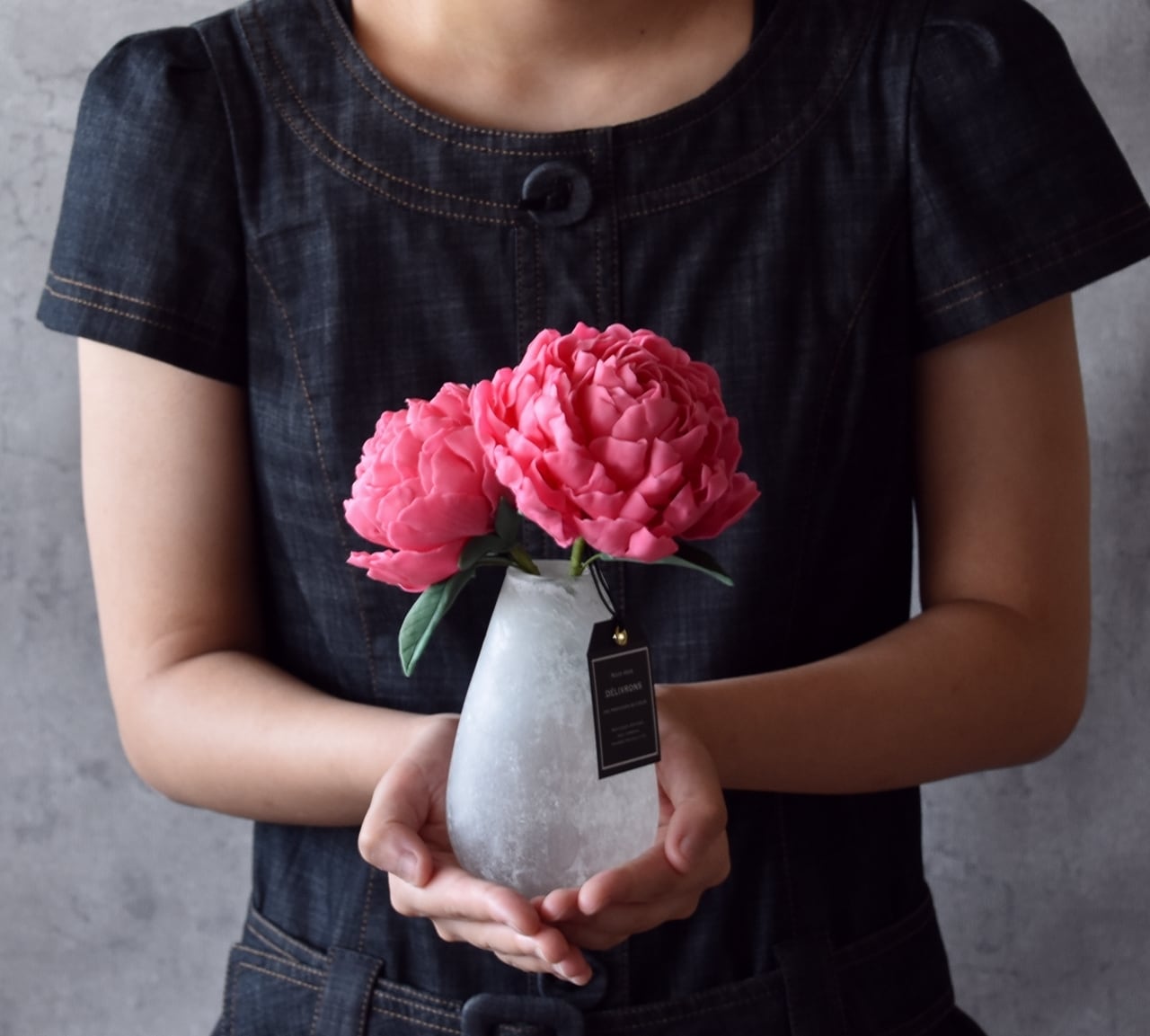 芍薬は花びらを一つ一つ最高級彫塑用ネンドで手作りしています。
