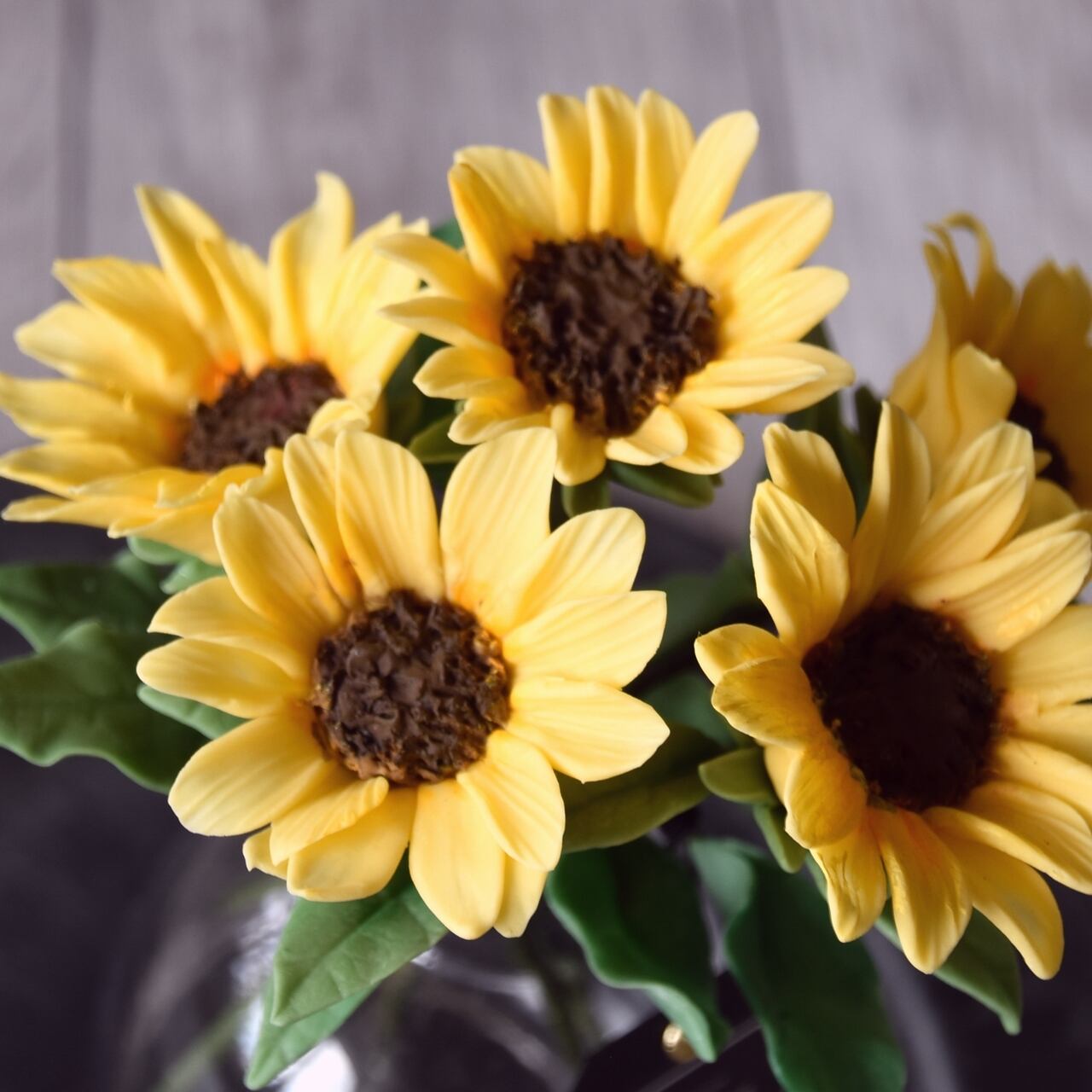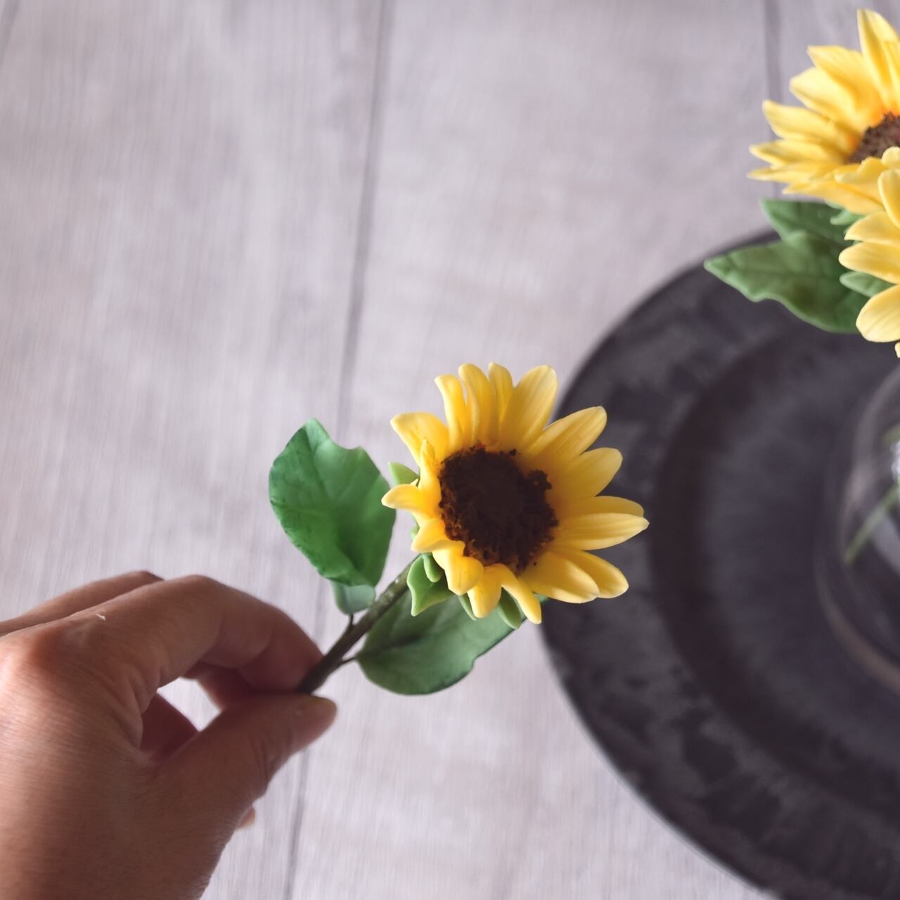 粘土で制作したミニひまわりです。
