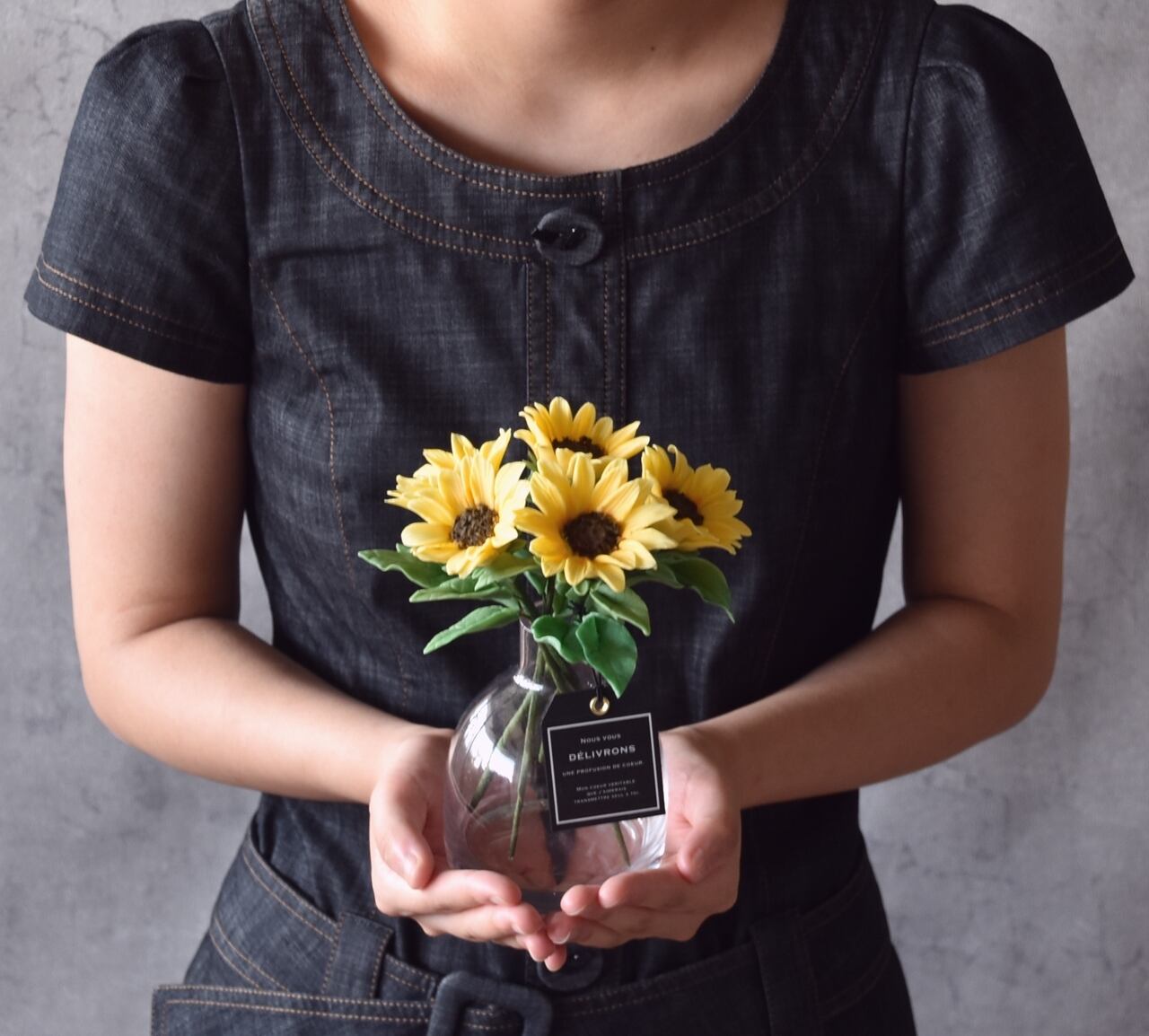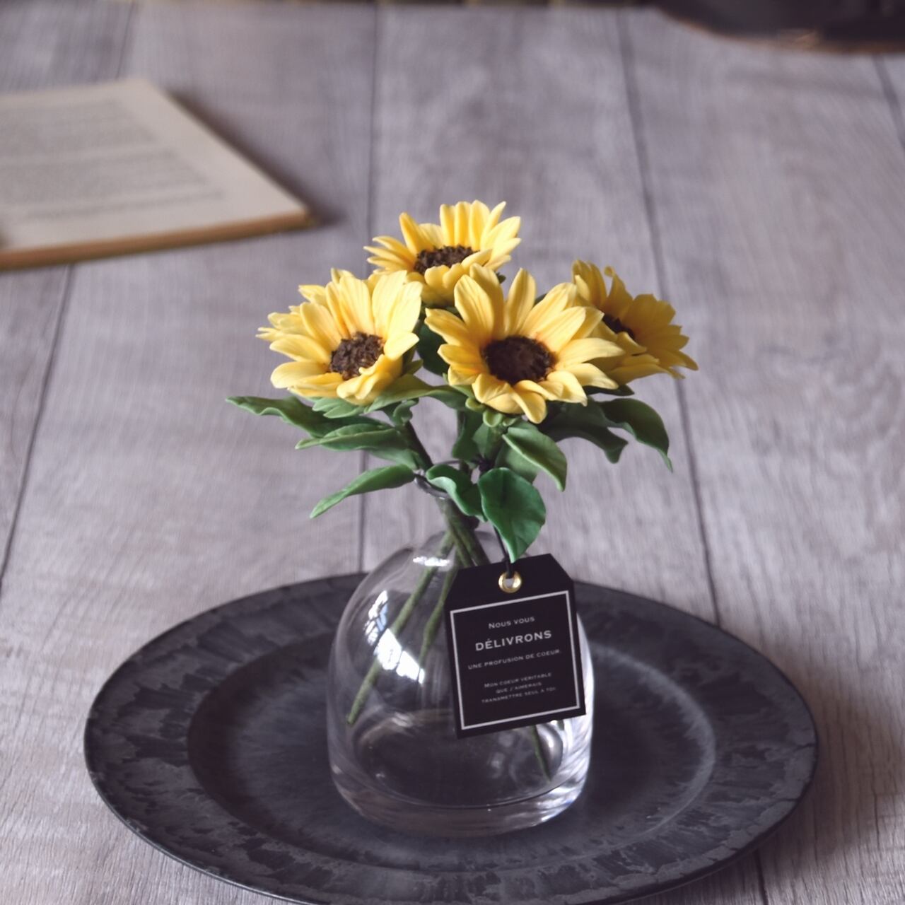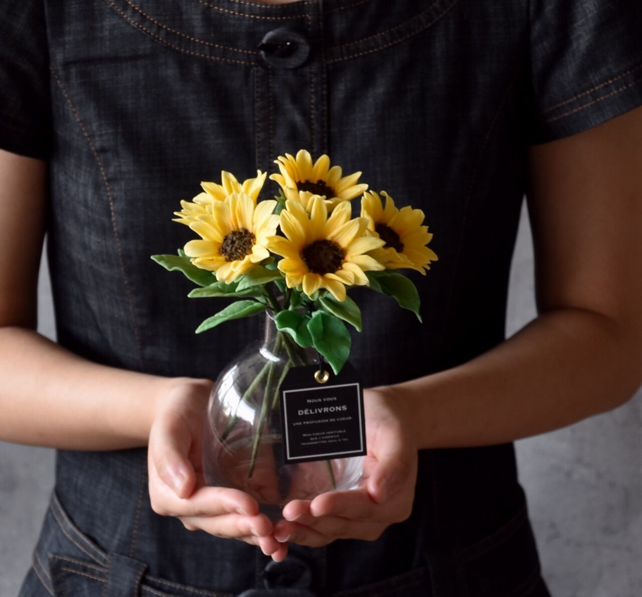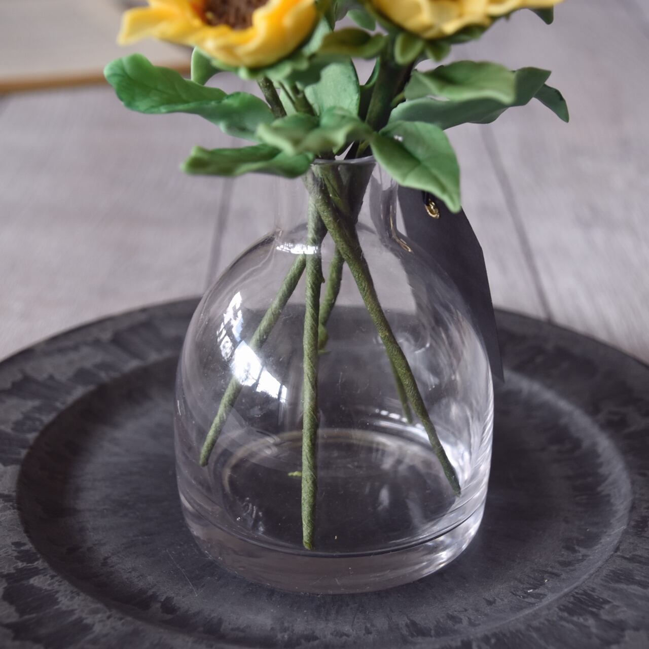 ◆粘土のお花◆ ミニひまわり ぽってりシンプルボトル クリア H819