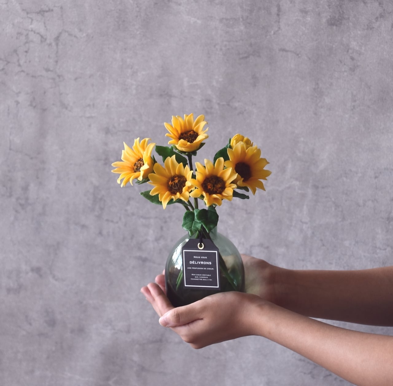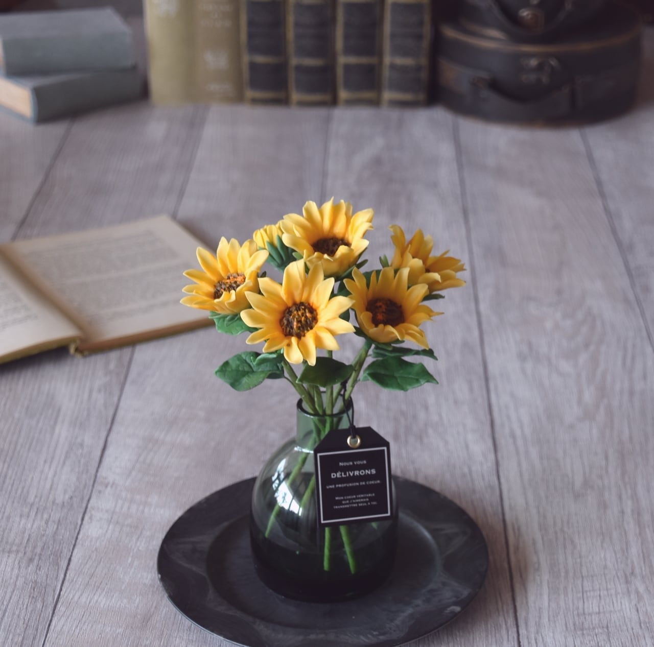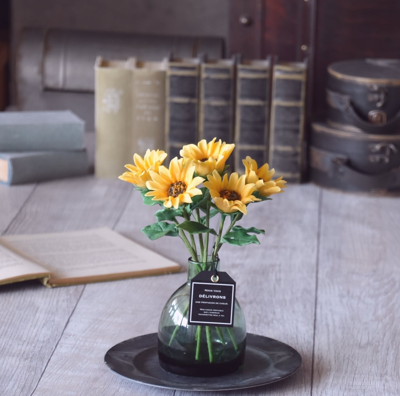 ◆粘土のお花◆ ミニひまわり ぽってりシンプルボトル グリーンボトル H828