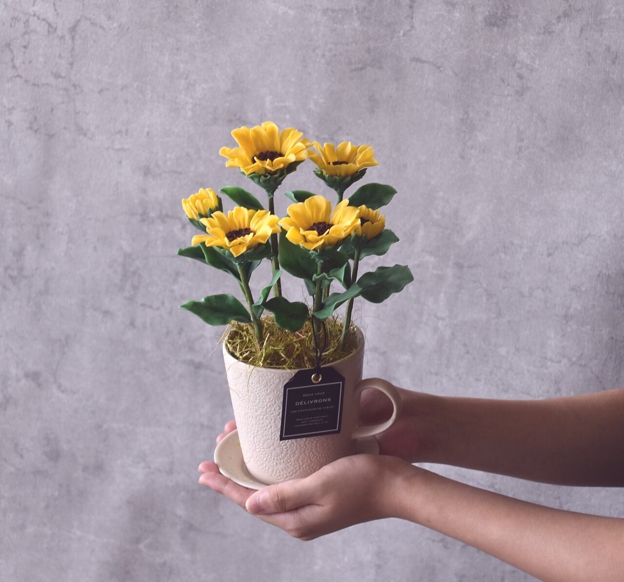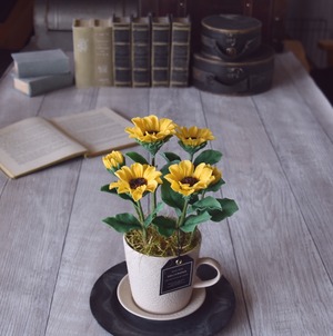 【粘土のお花】 ミニヒマワリ フラワーポット H829