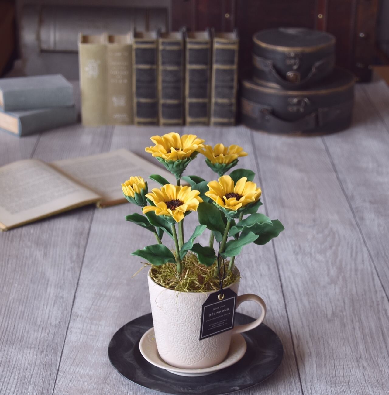 粘土で制作したミニひまわりです。