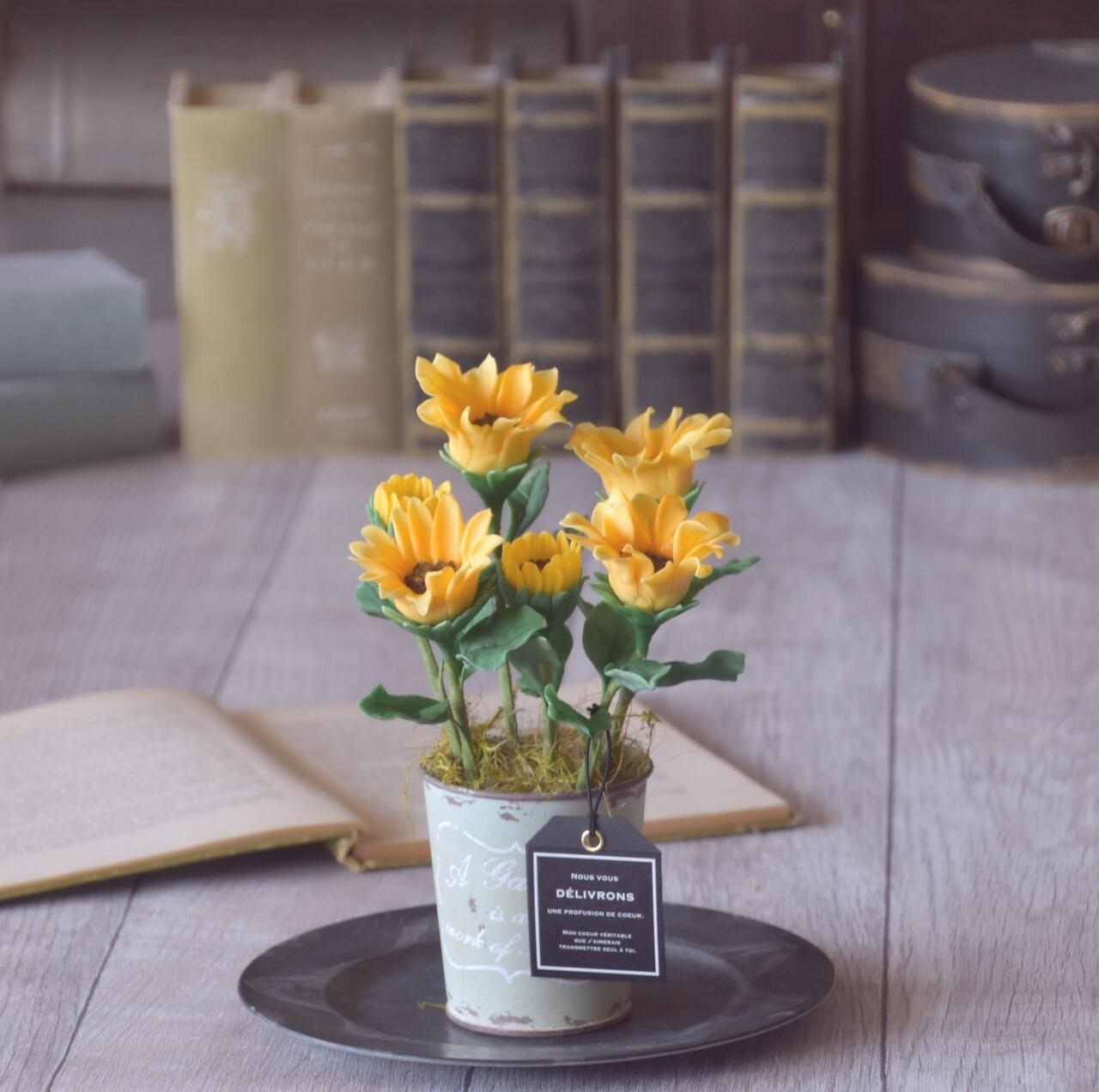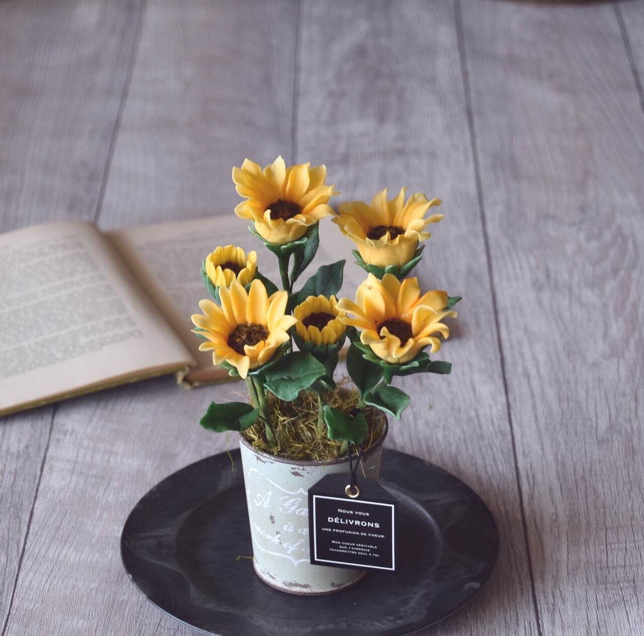 ◆粘土のお花◆ ヒマワリ アンティーク調 ブリキポット H831