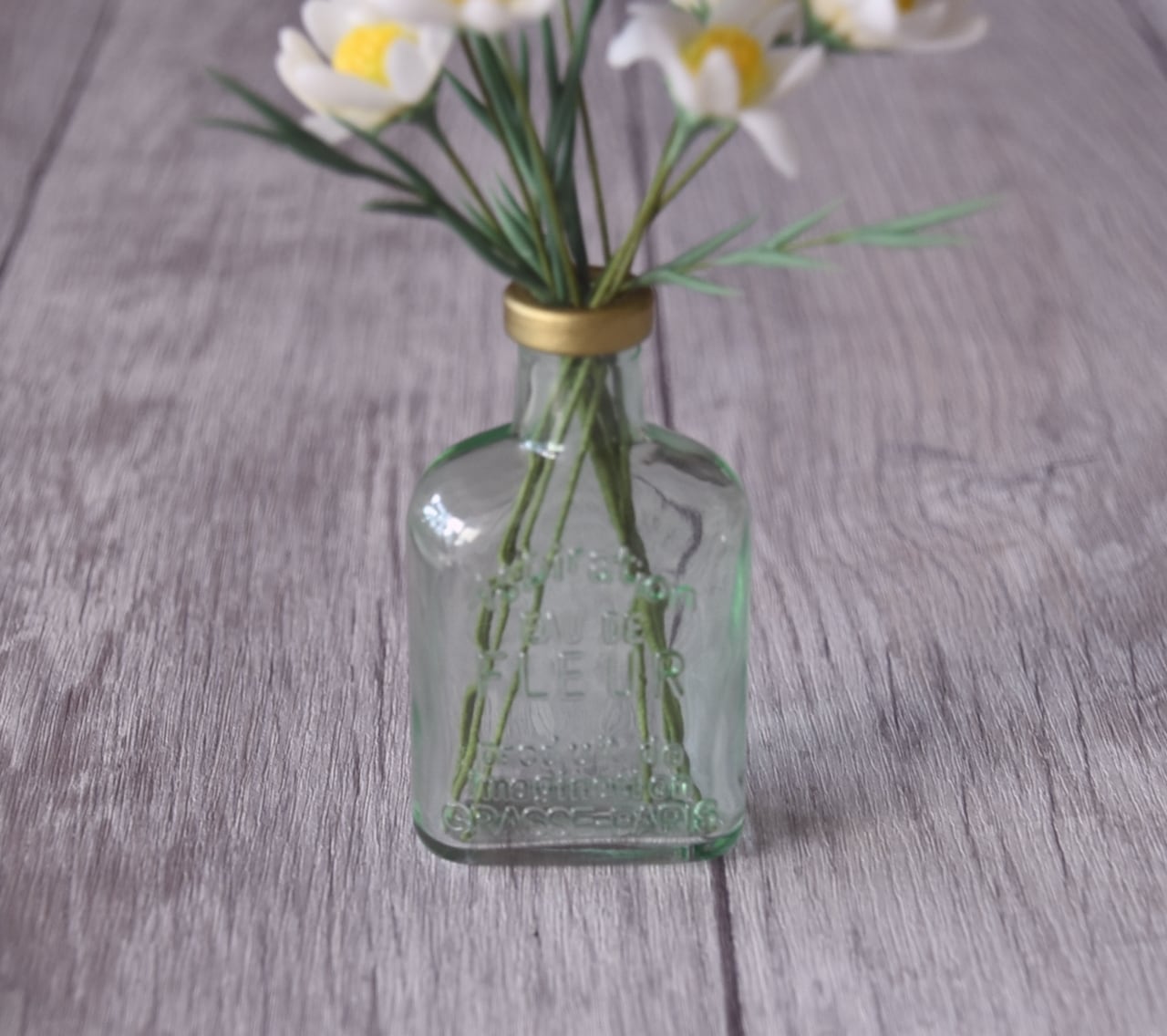 デイジーのような小さな白い花がとてもかわいく、グリーンボトルとの相性もぴったりです。