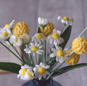 ◆粘土のお花◆ カモミール&ビリーボタン(クラスペディア) シンプルボトル K841