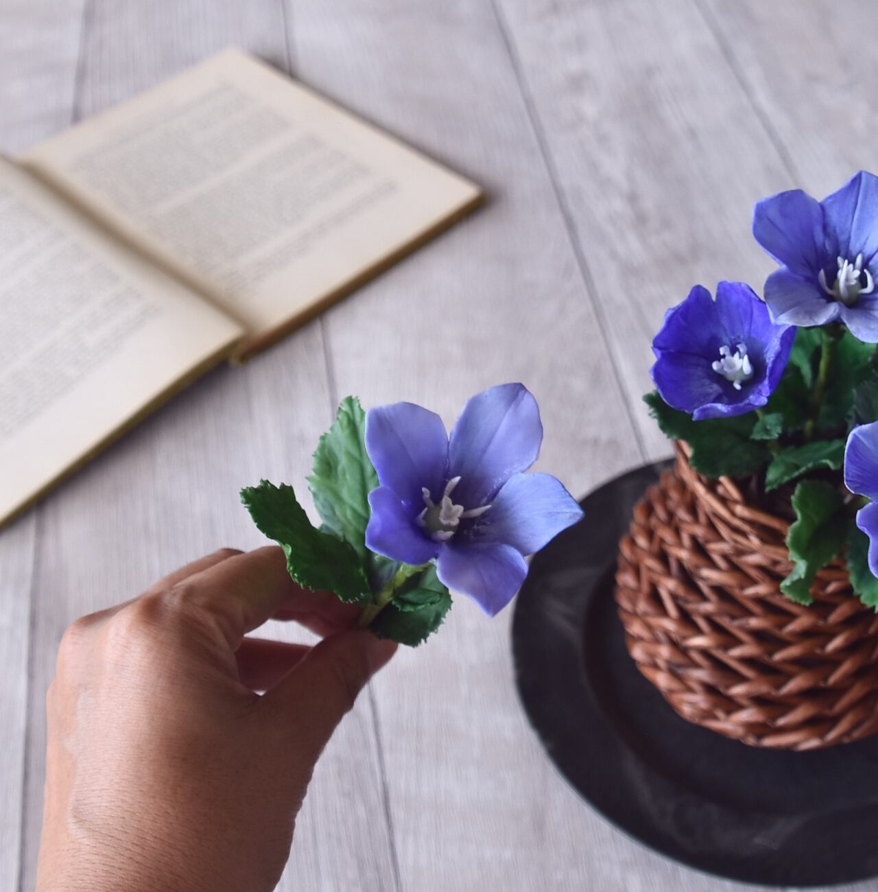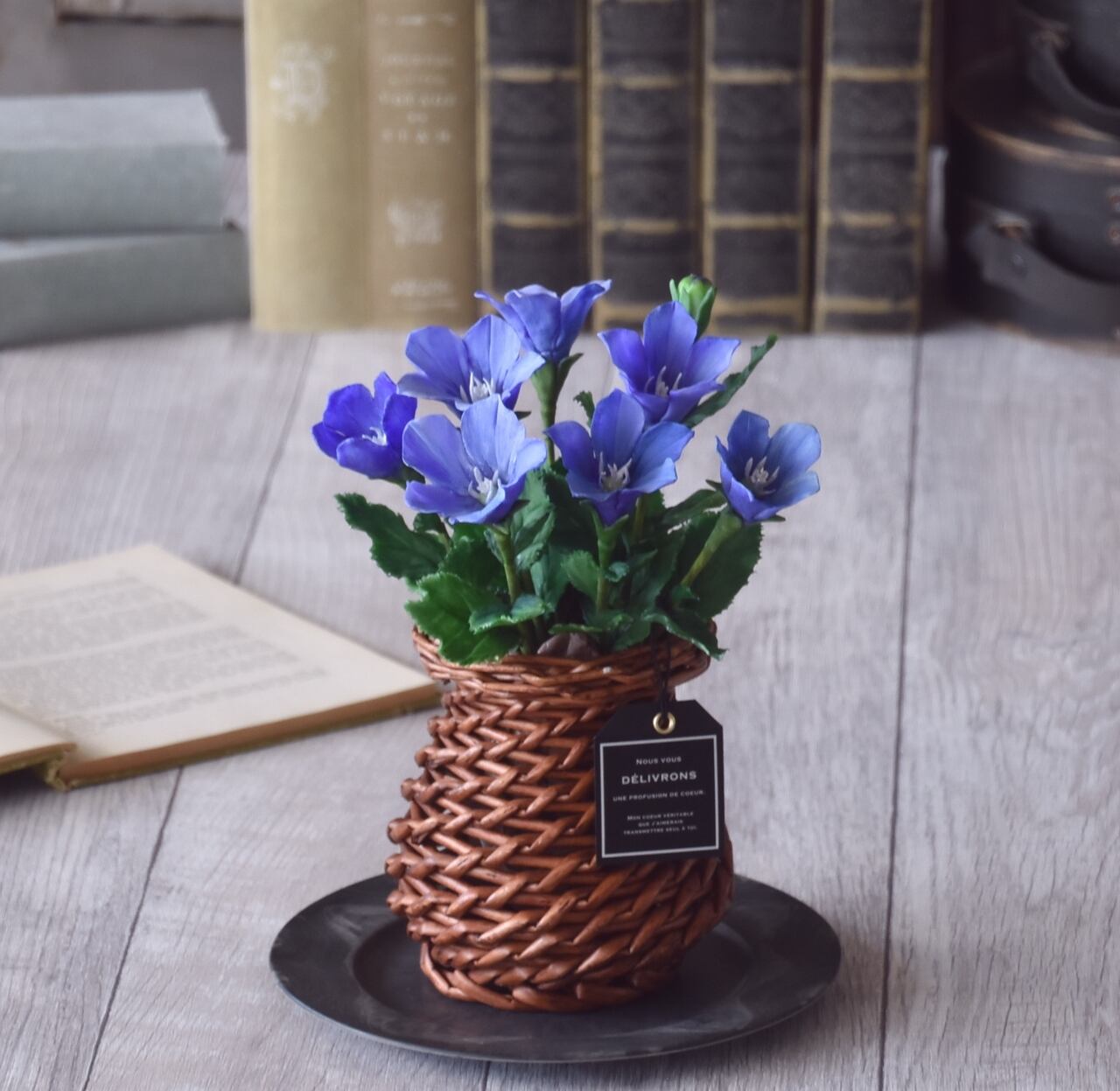 ◆粘土のお花◆ 桔梗(キキョウ)・籠・・・K854