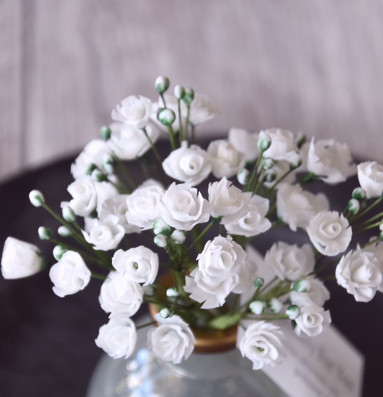 ●かすみ草は粘土で手作りしています。