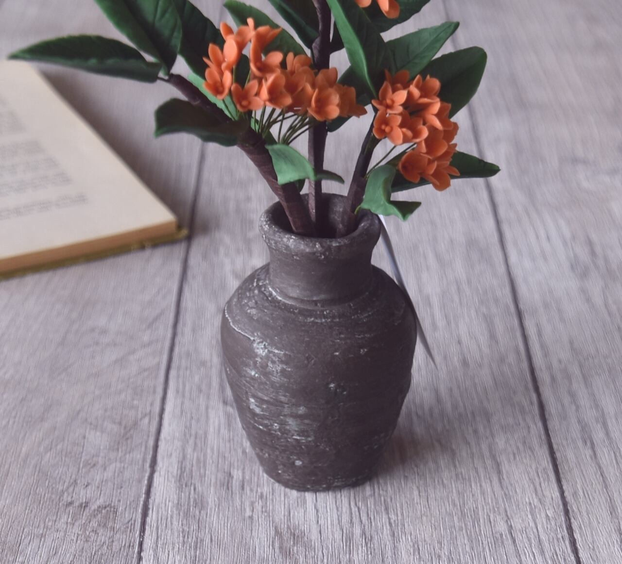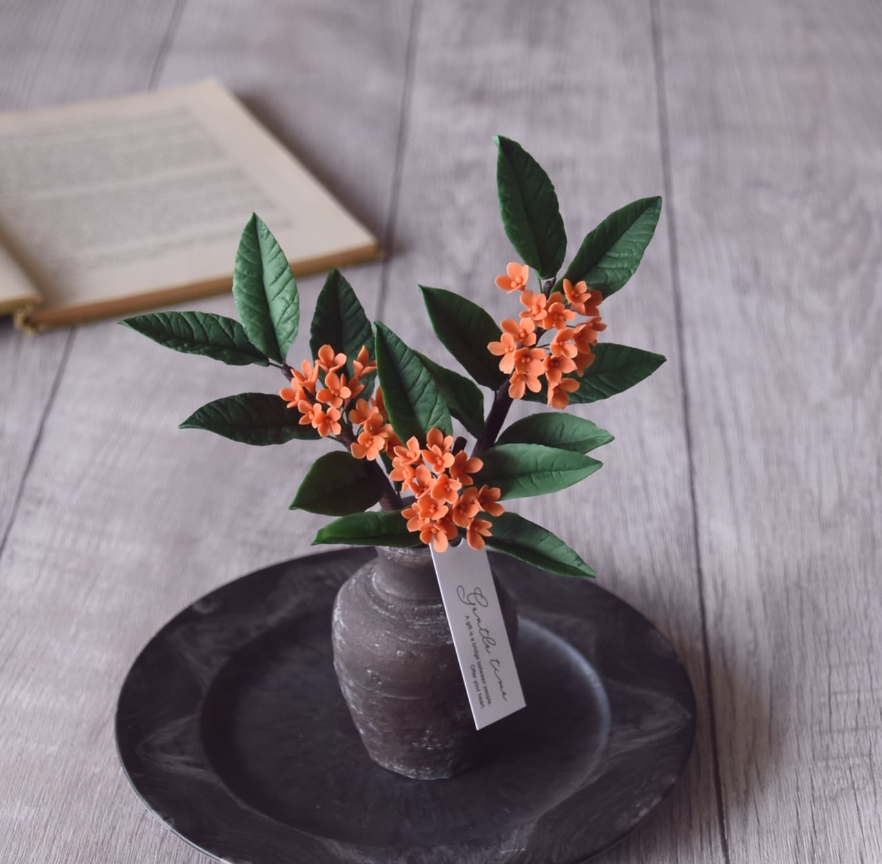 ◆粘土のお花◆ 金木犀(キンモクセイ)壺・・・ 高さ約20センチ K867