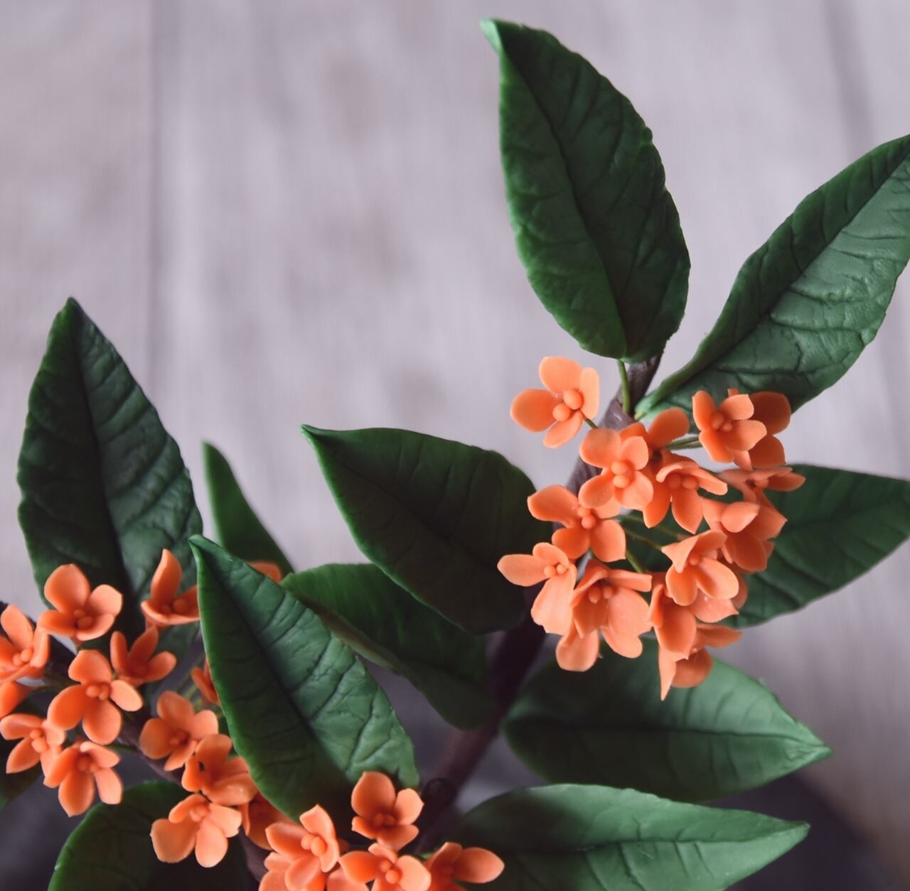 可愛らしいオレンジ色の小さい花を丁寧に一つ一つ作りました。
