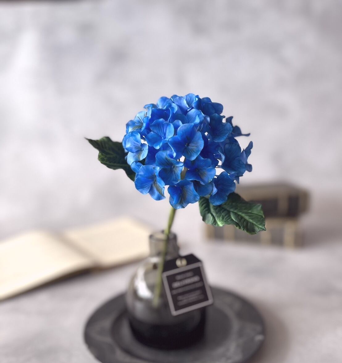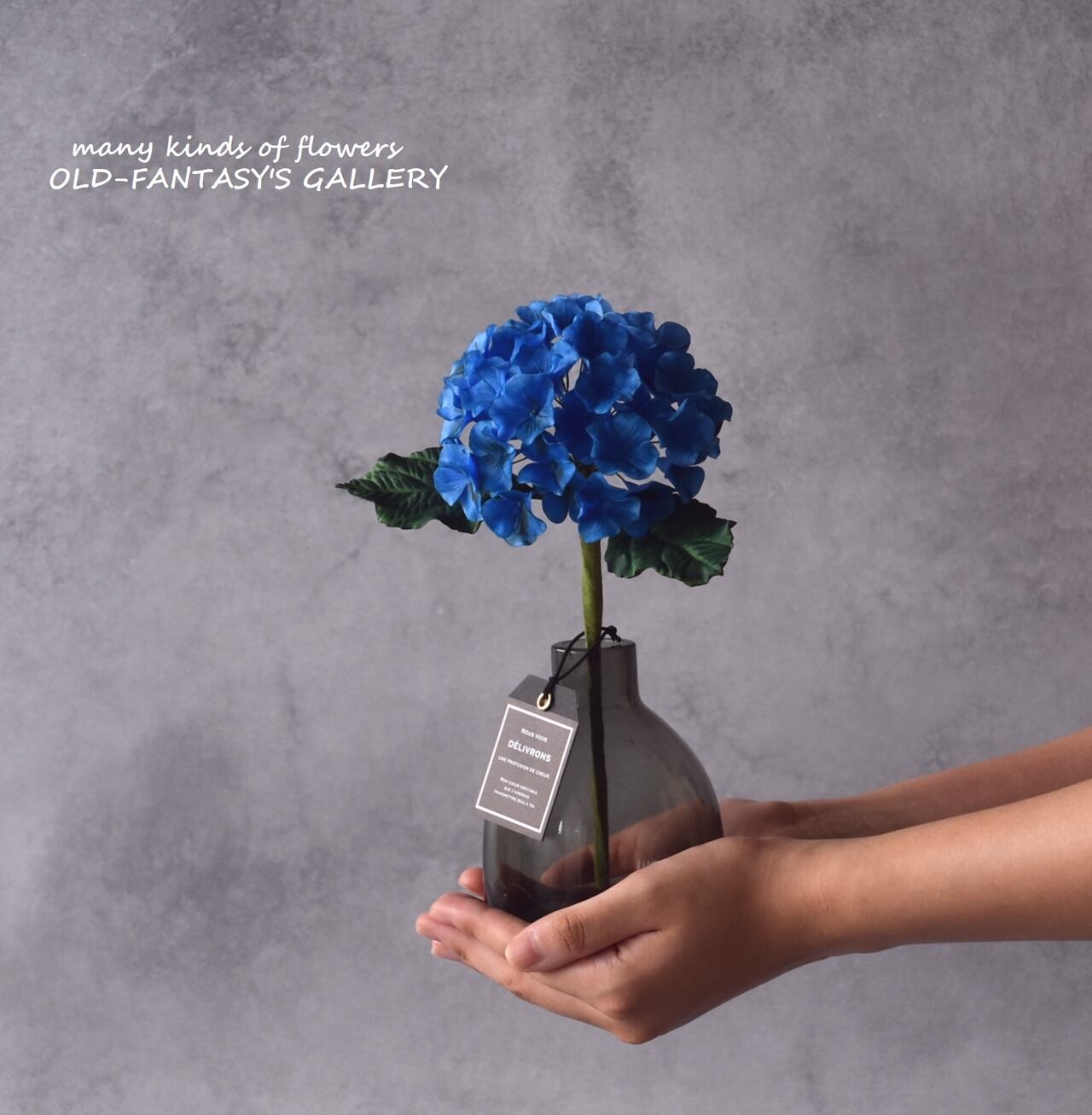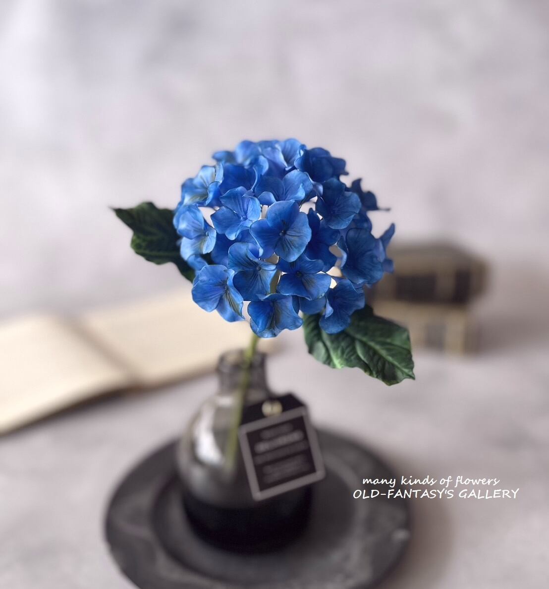 ◆粘土のお花◆ 秋色紫陽花 ブルー シンプルブラックベース…A878