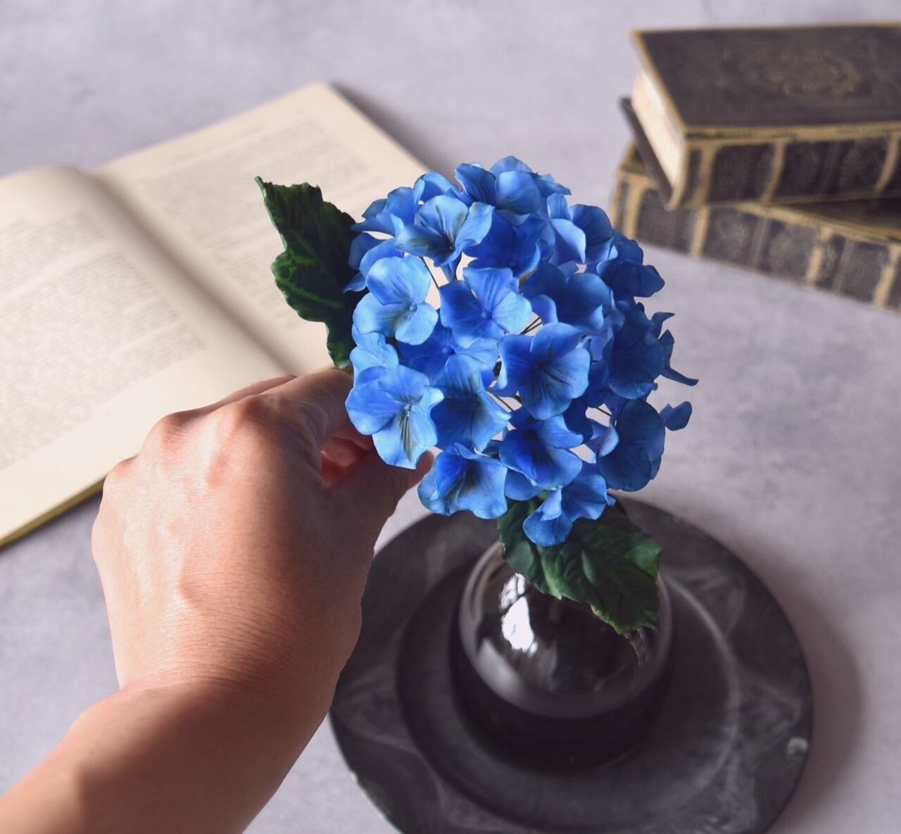 ●紫陽花は花びらを一つ一つ最高級彫塑用ネンドで手作りしています。