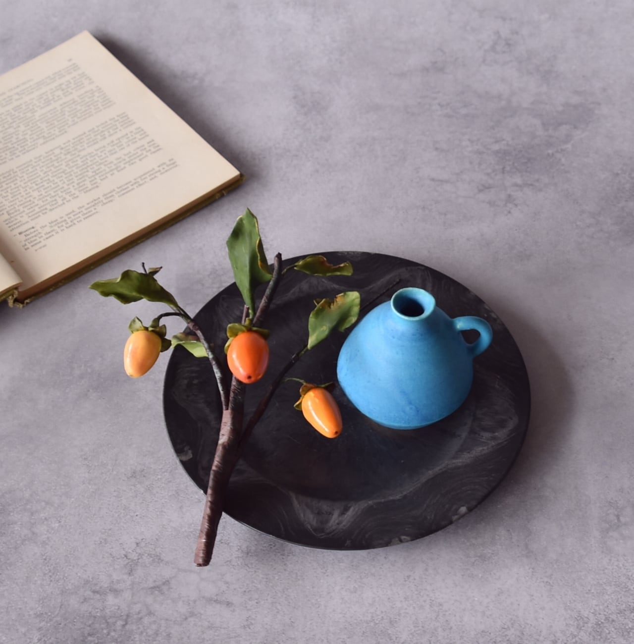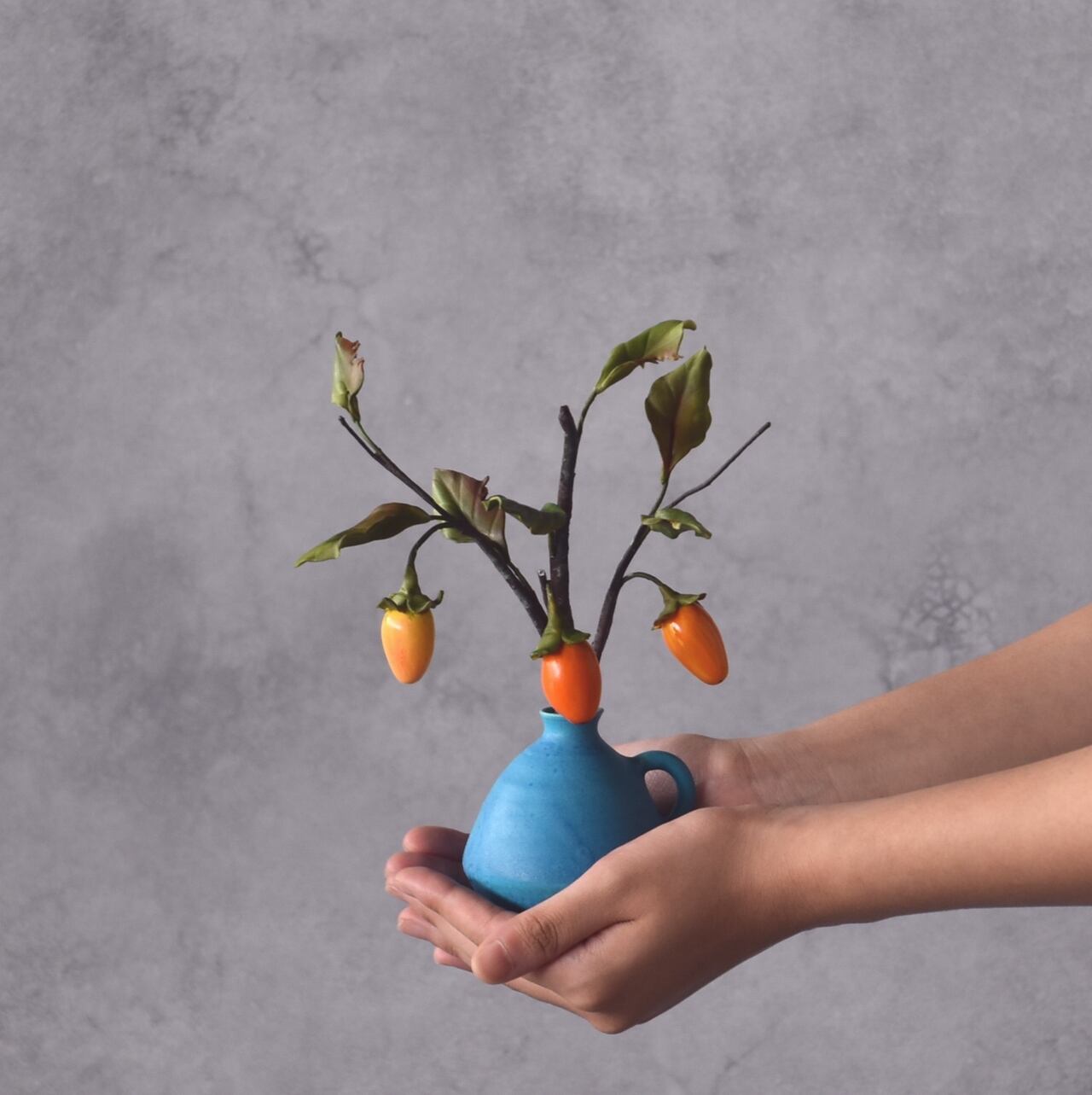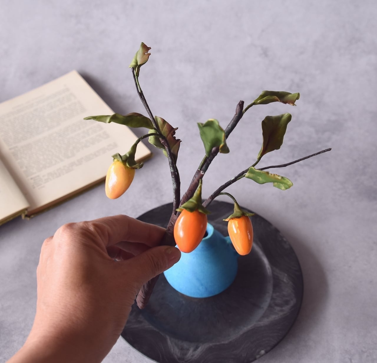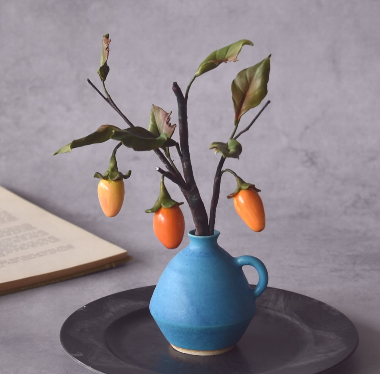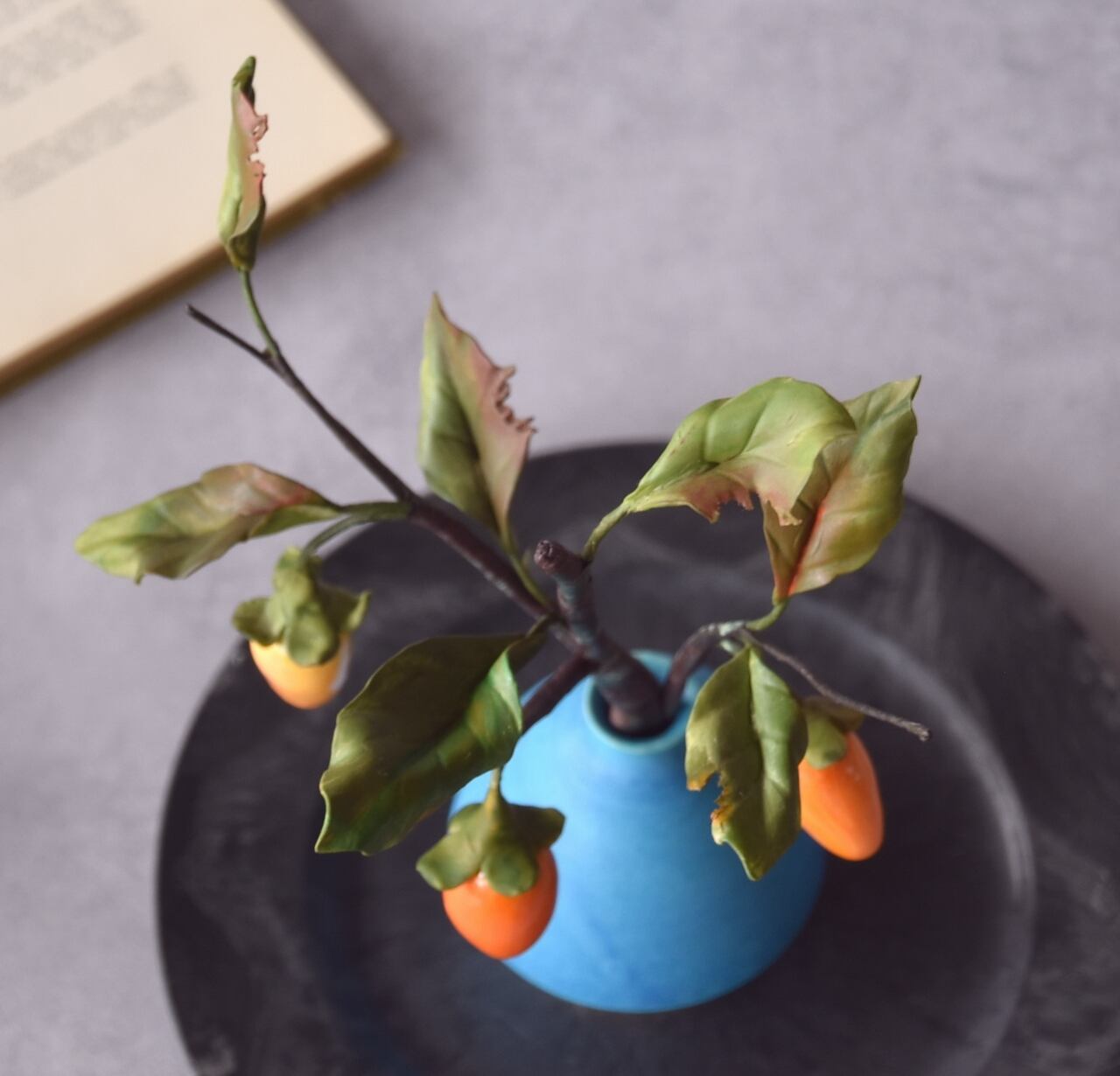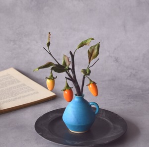 ◆粘土のお花◆ 柿 【ロウヤガキ(老爺柿)】【信楽焼】ペティベース・・・高さ22センチ K879