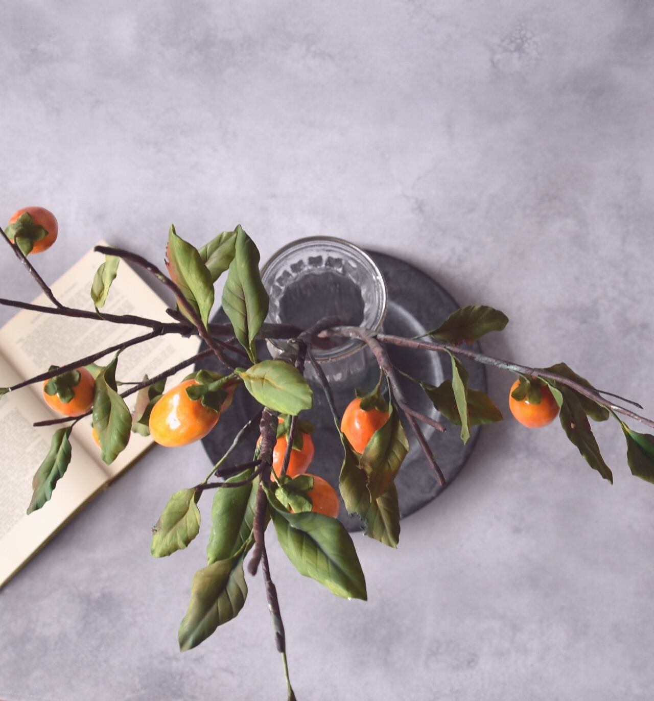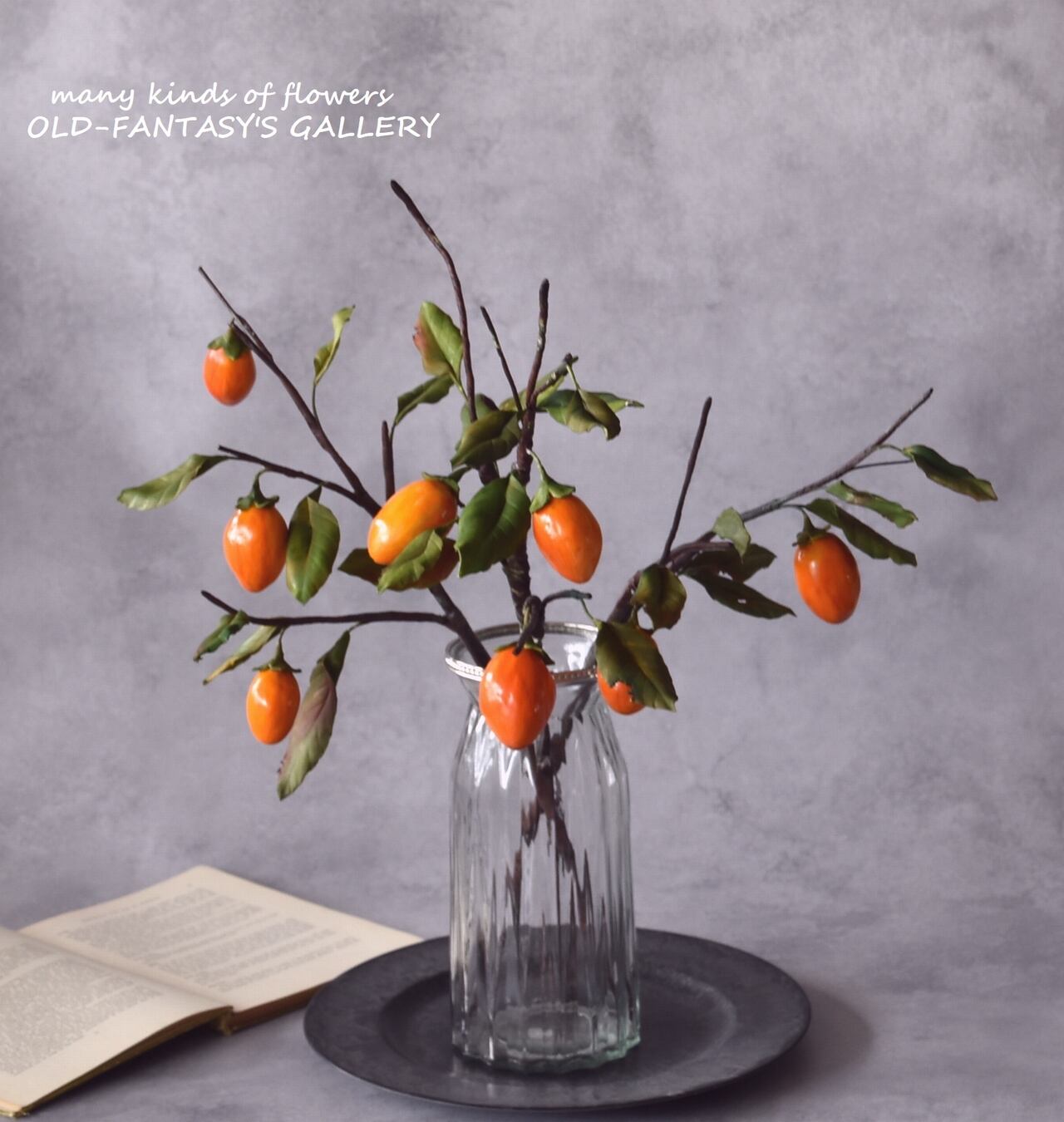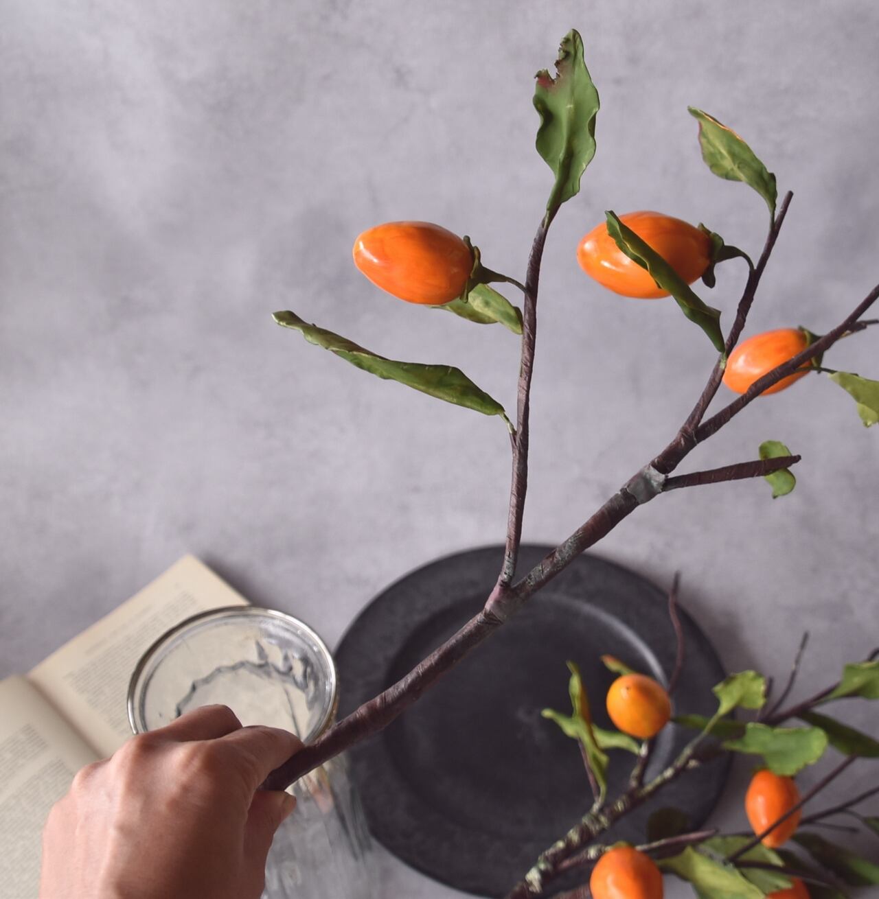 ◆粘土のお花◆ 柿 大きな枝3本・・・高さ約50センチ K881