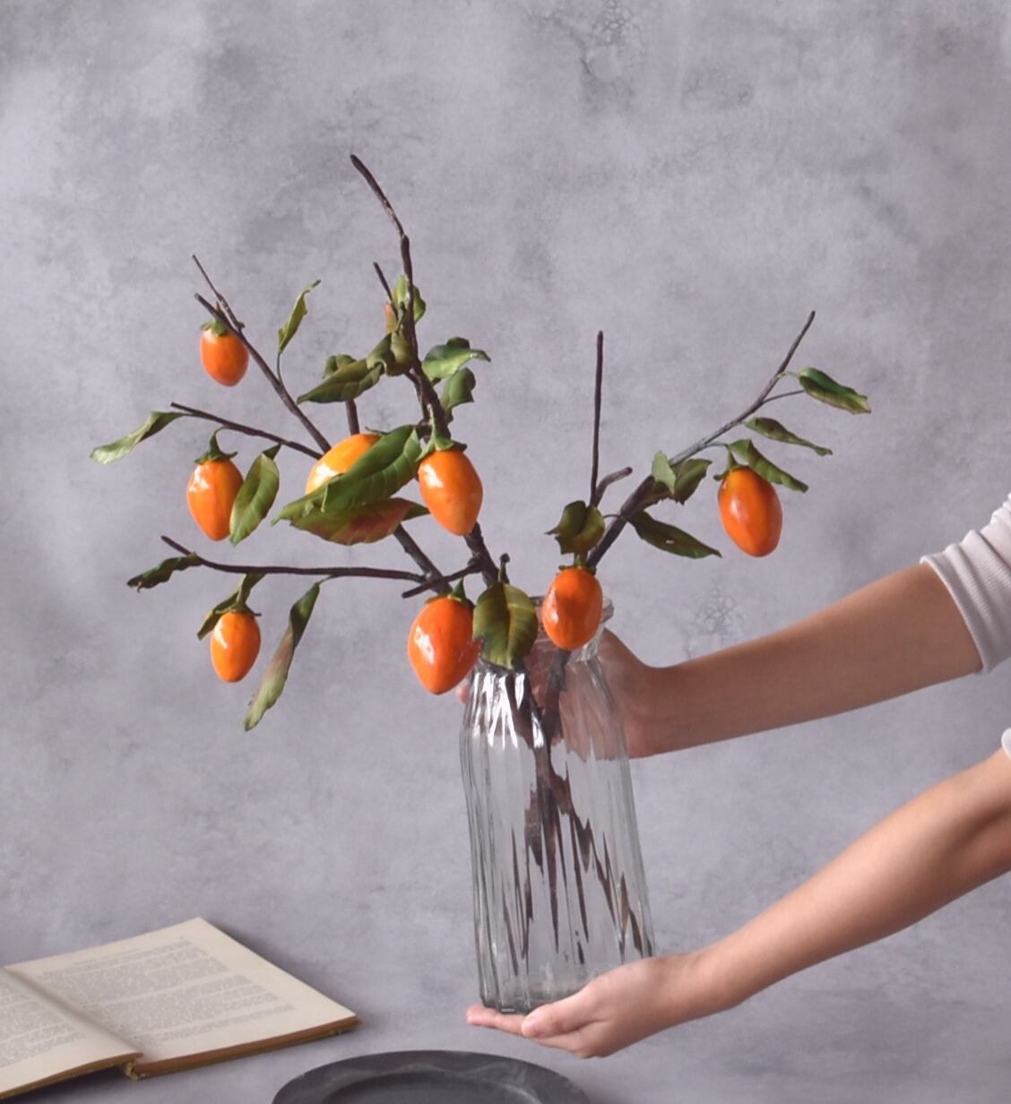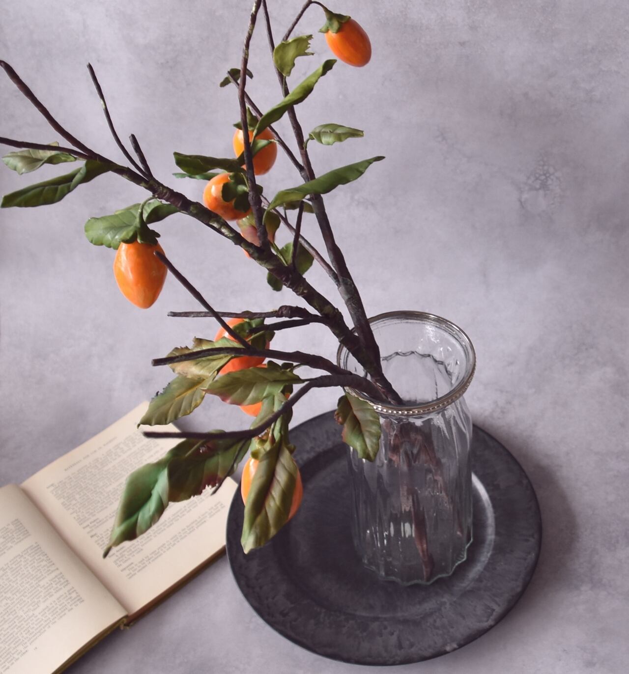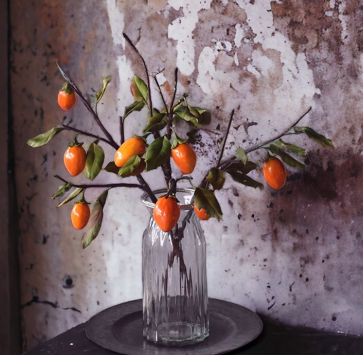 ◆粘土のお花◆ 柿 大きな枝3本・・・高さ約50センチ K881