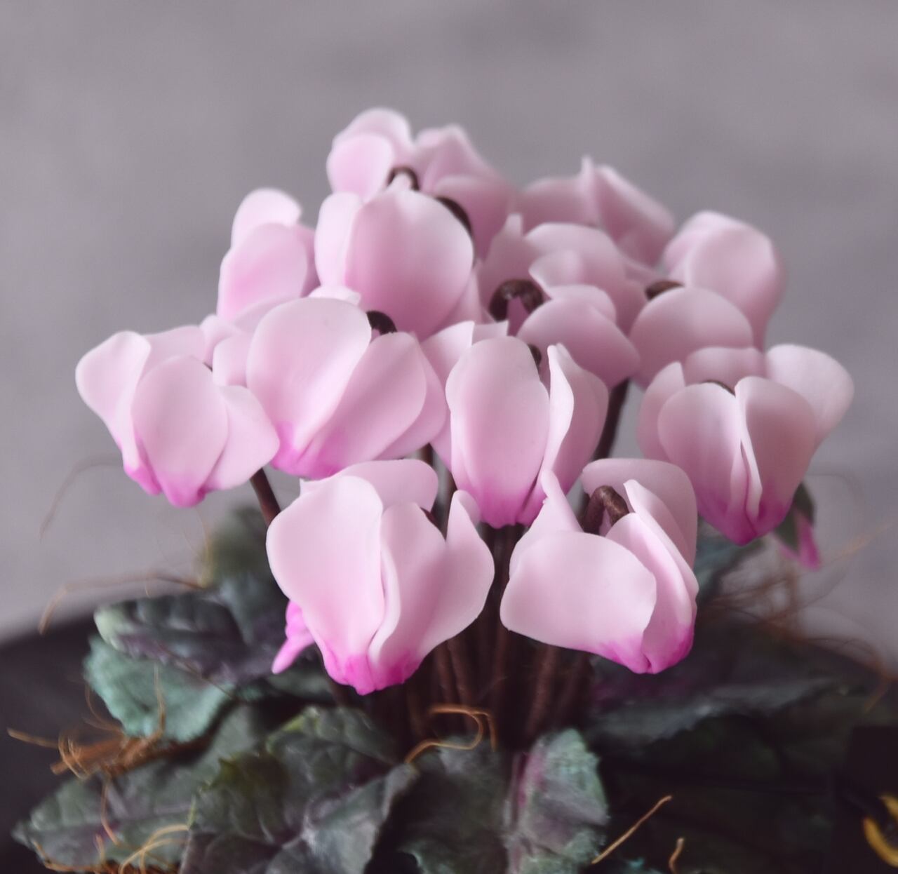 ◆粘土のお花◆ 小さなシクラメン ピンク グラックブリキカップ… S884