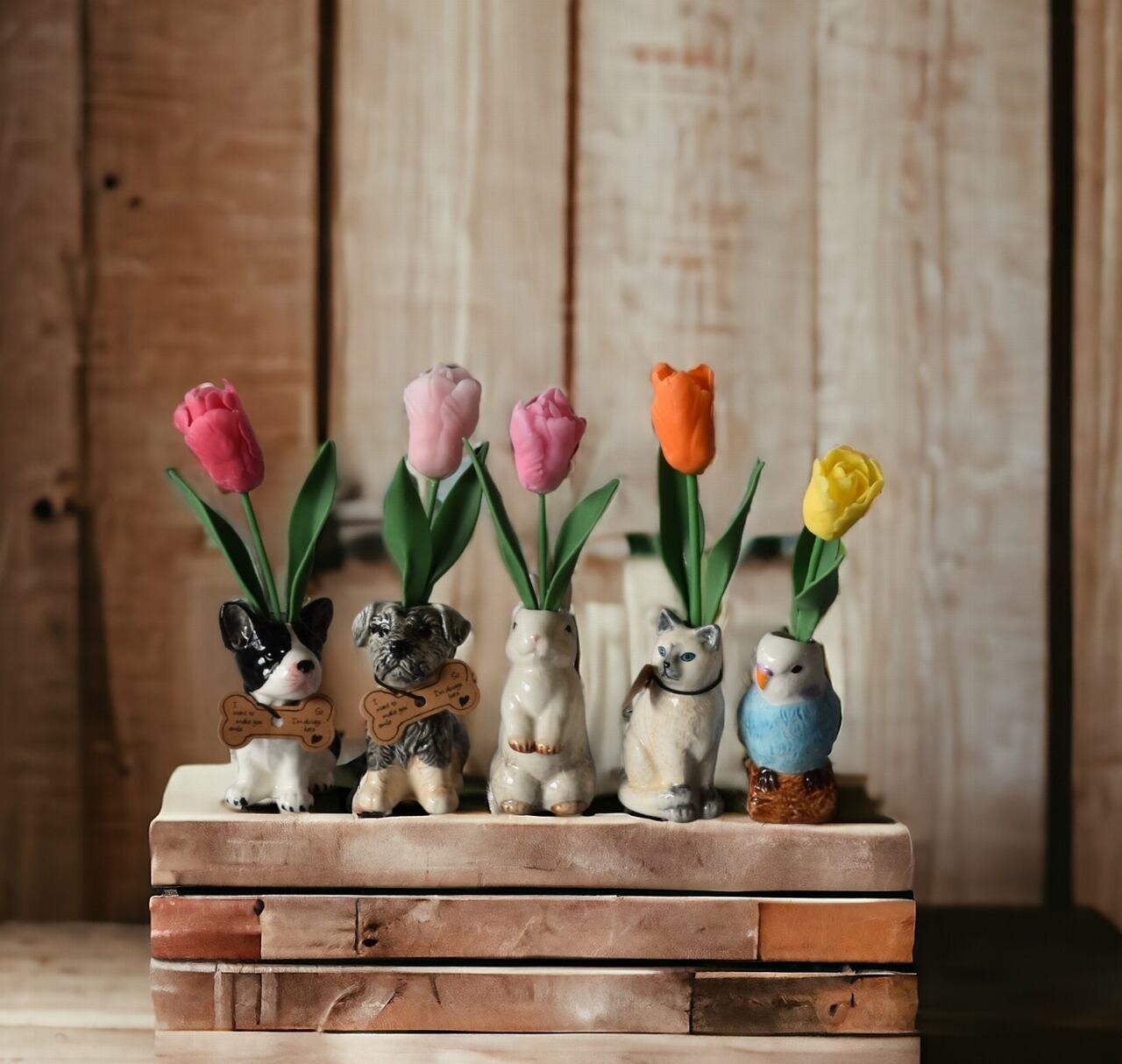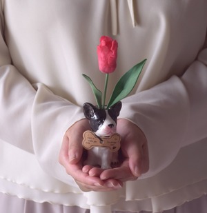 ◆粘土のお花◆ チューリップ アニマルベース フレンチブルドッグ T942