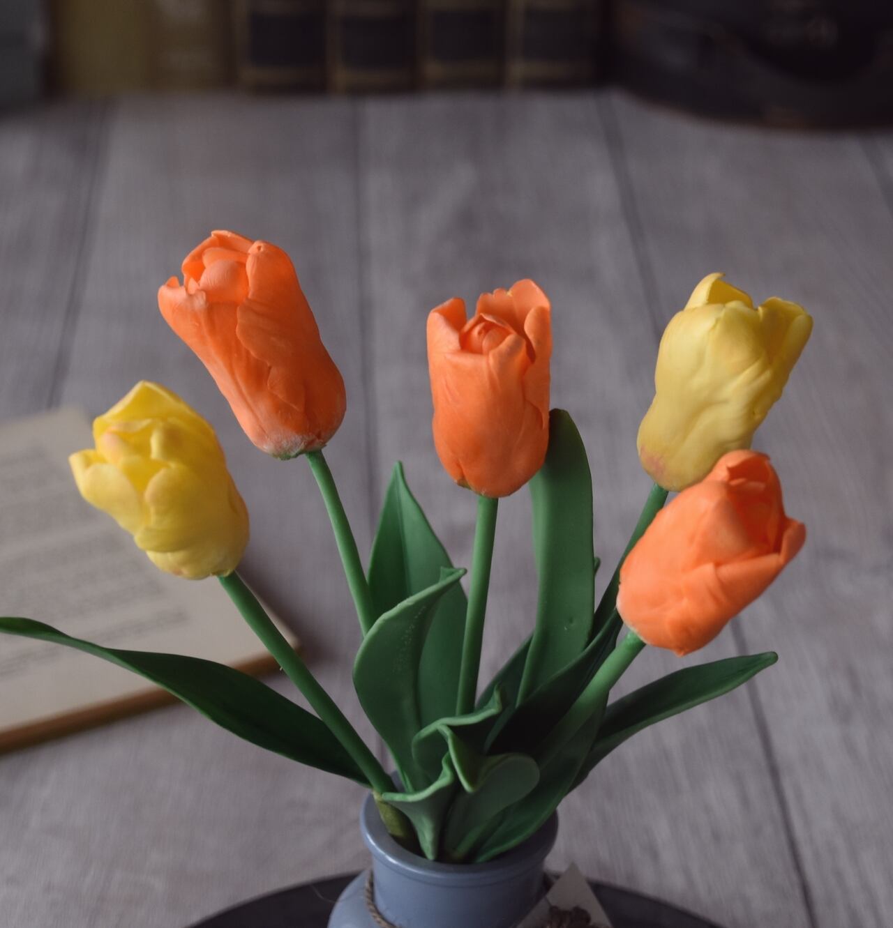 ◆粘土のお花◆ チューリップ オレンジ&イエロー T947