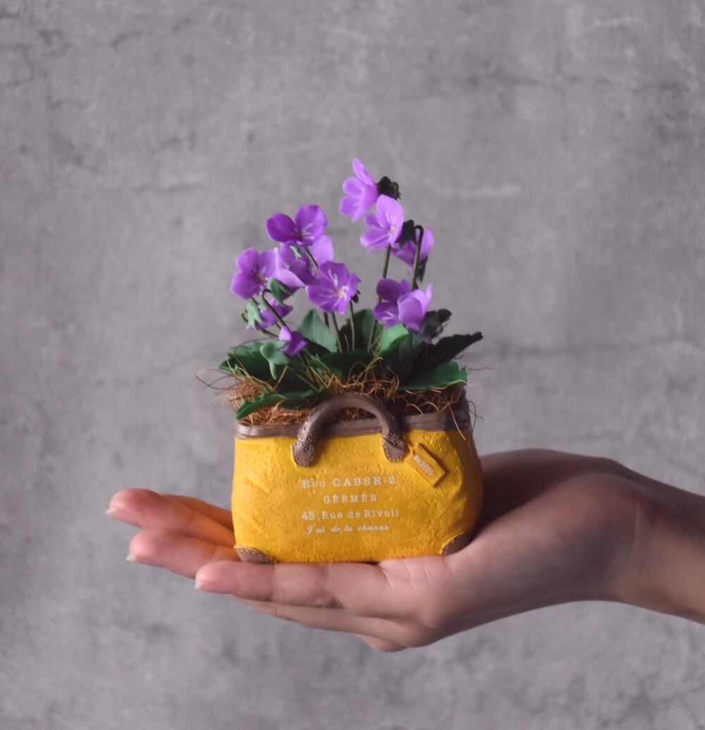 ◆粘土のお花◆ 小さなスミレ ミニポット(バッグ) S954