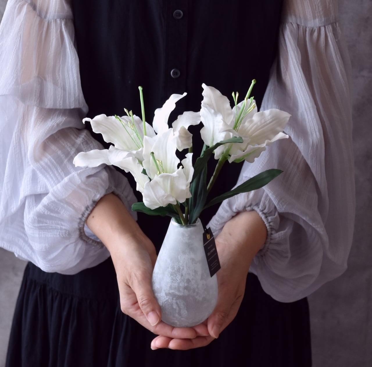 上品で優雅な佇まいのカサブランカと、とてもマッチしていますので、お気に入りのコーナーやキャビネットに置いてしっとりとした雰囲気をお楽しみください。