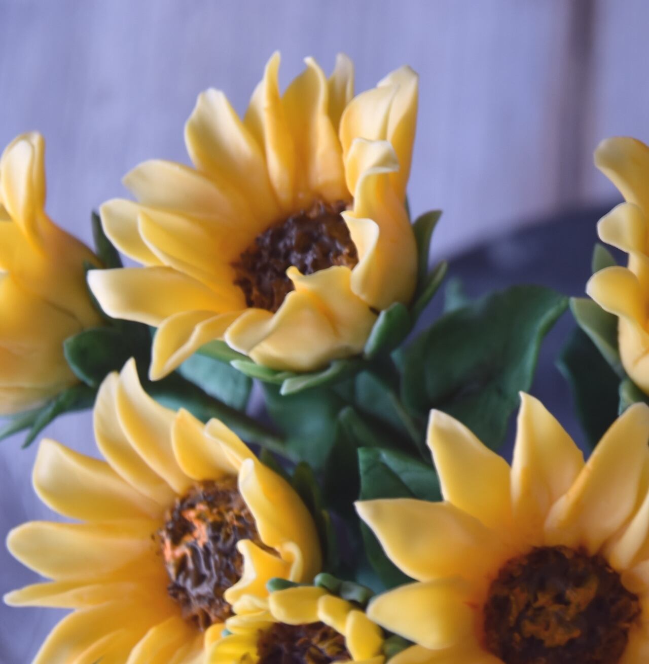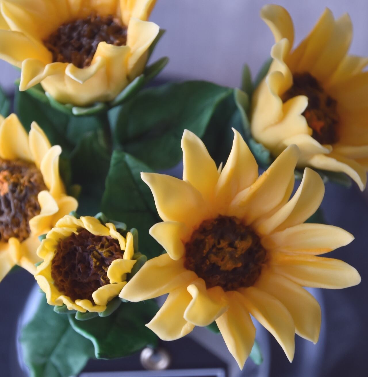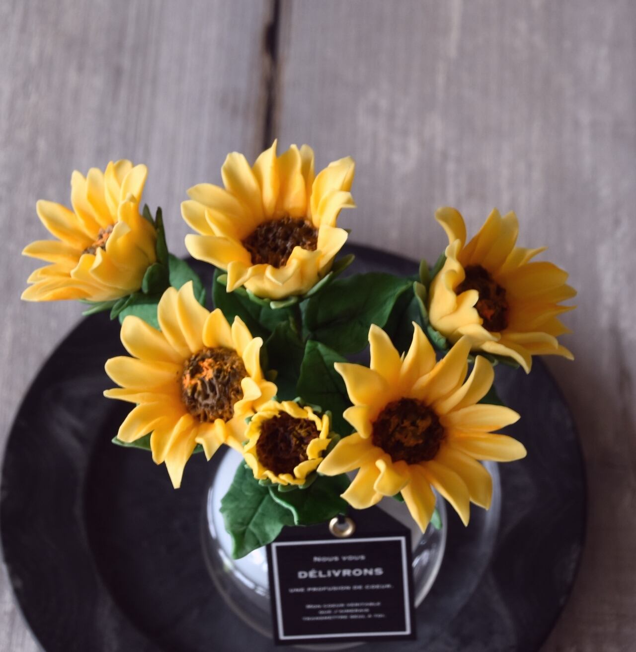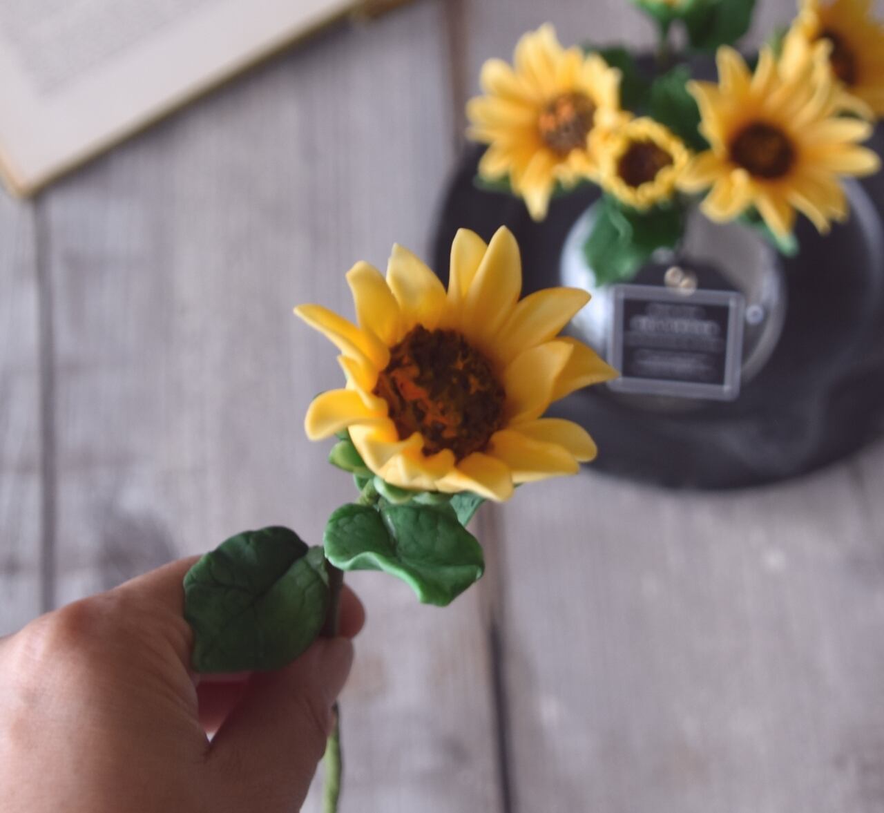 ◆粘土のお花◆ ミニヒマワリ ホワイトボールベース H1021