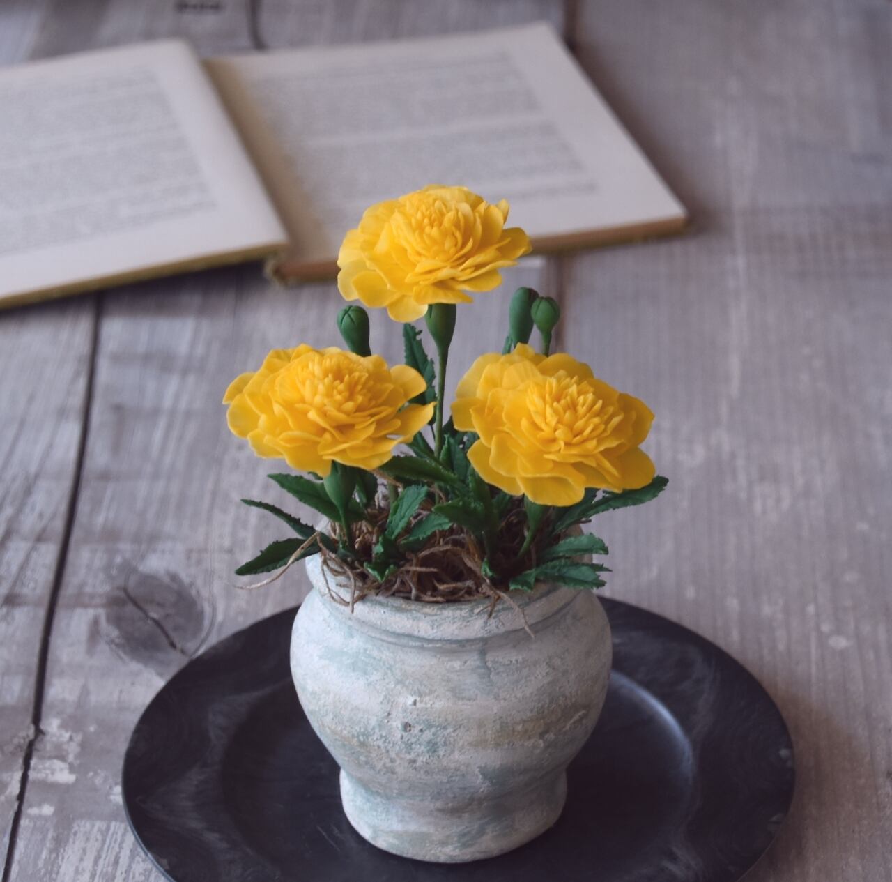 ◆粘土のお花◆ マリーゴールド イエロー R1025