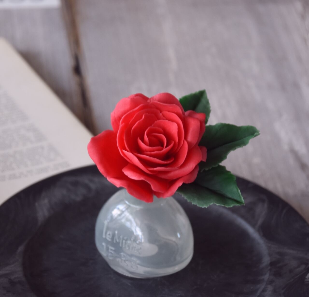 ◆粘土のお花◆ 薔薇 一輪 赤 フラットボトル・・・B1036