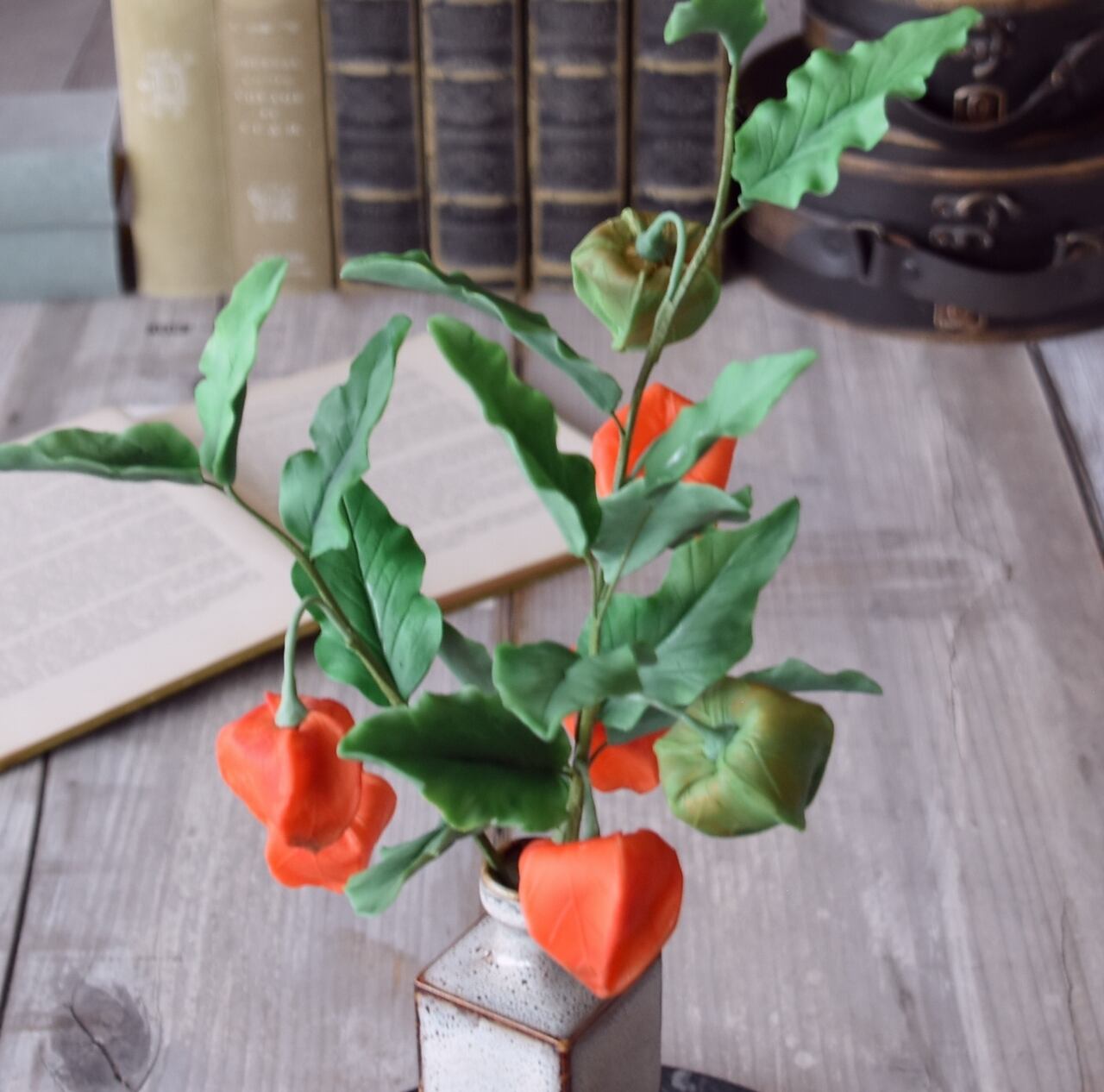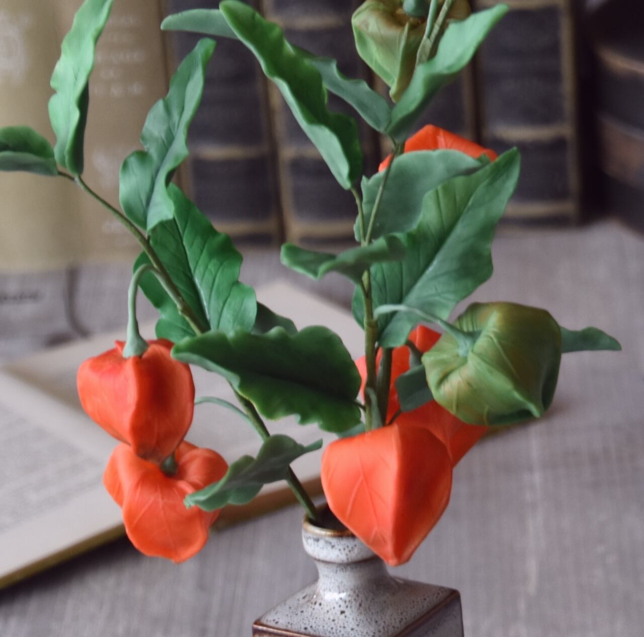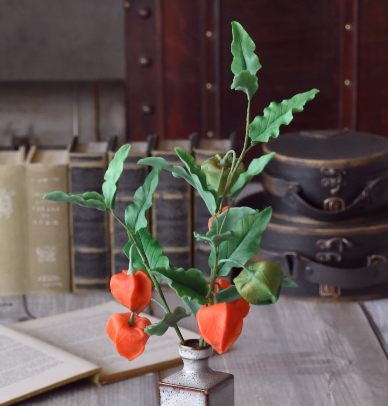 ◆粘土のお花◆ ホオズキ(鬼灯)【波佐見焼】 凛ベース・・・H1043