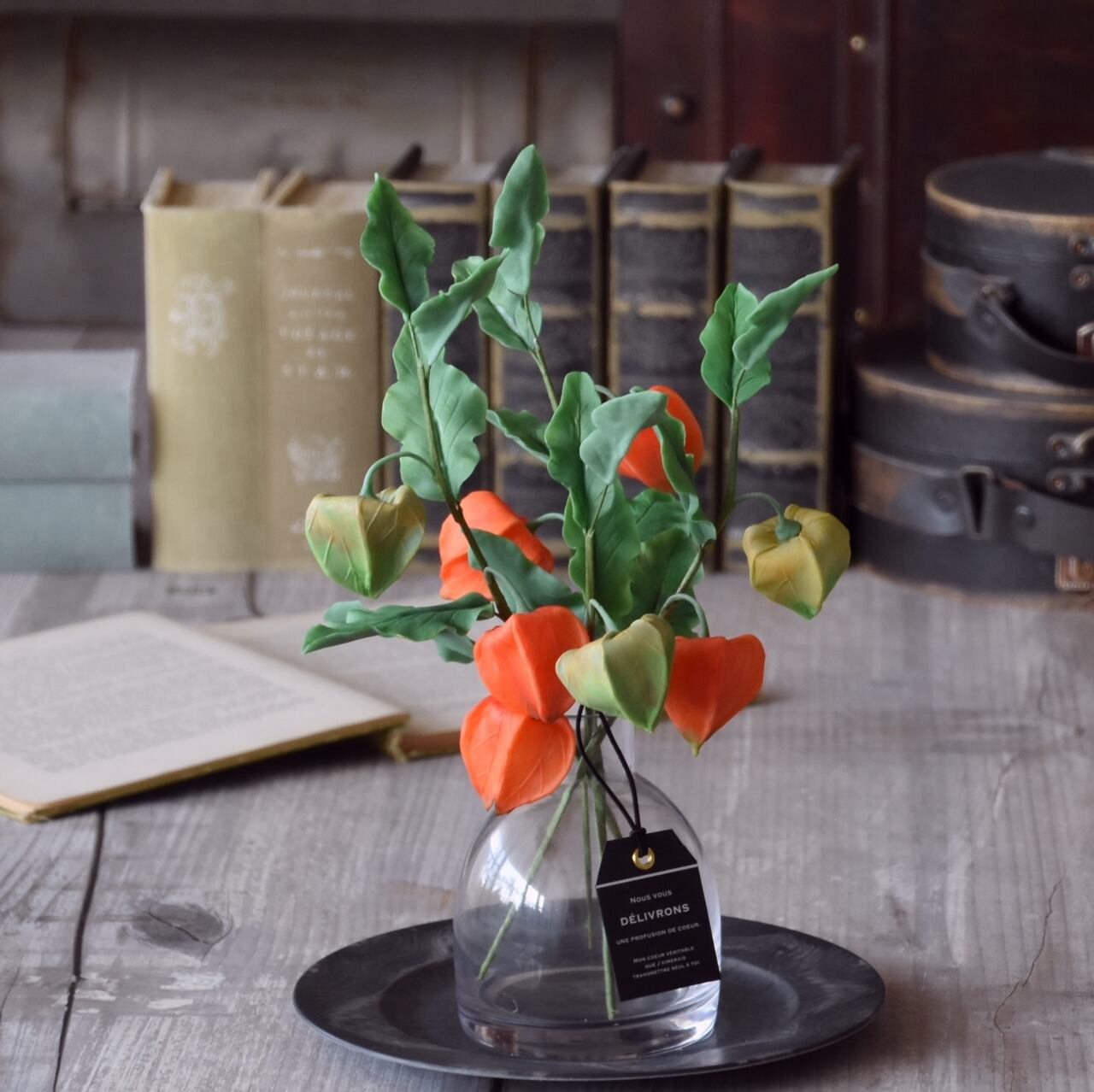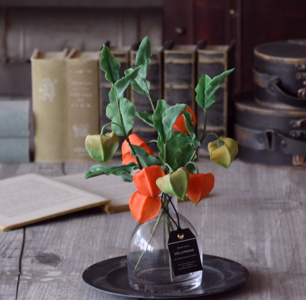 ◆粘土のお花◆ ホオズキ シンプルベース ・・・H1046