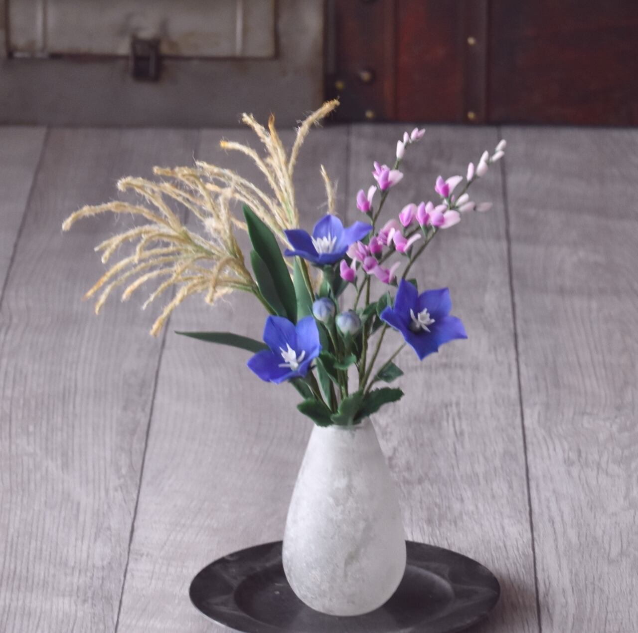 ◆粘土のお花◆ 秋の花 ススキ・桔梗(キキョウ)・萩・・・K1058